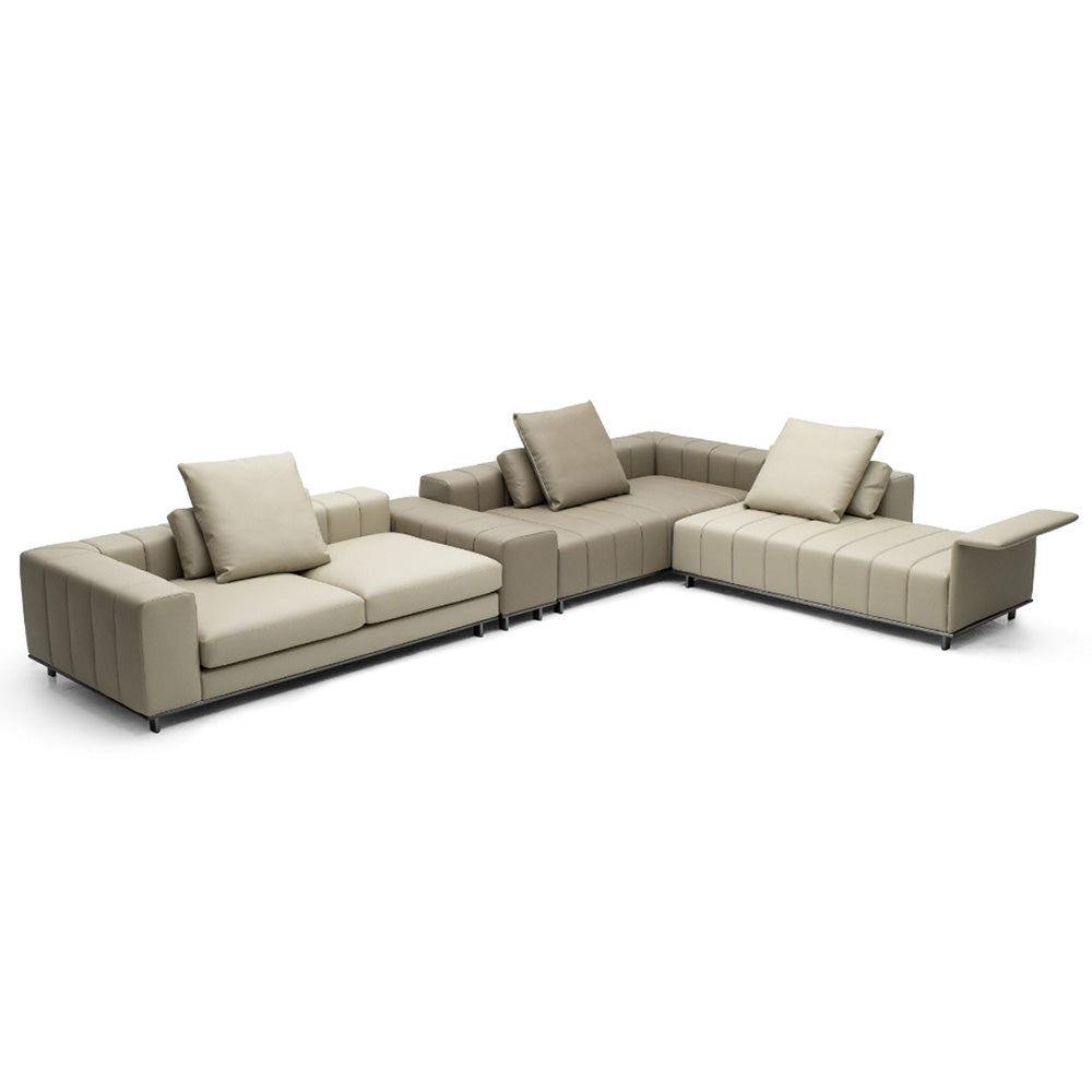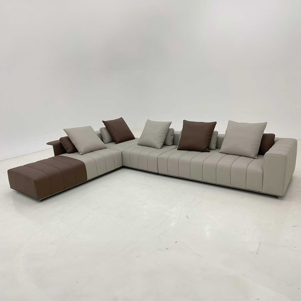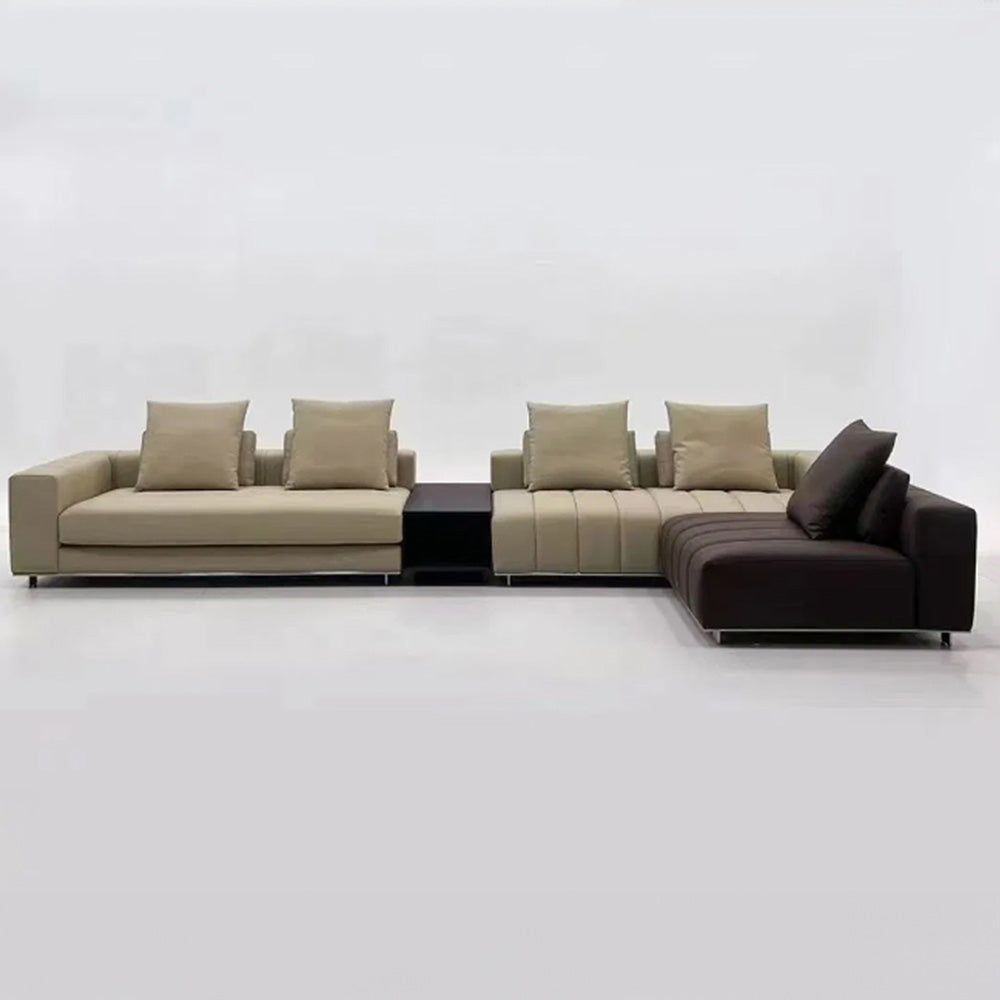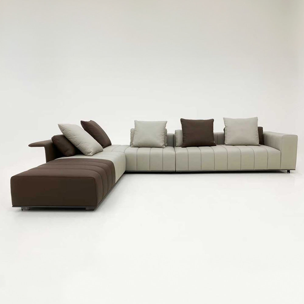 The Alexander sectional sofa combines modern design with exceptional functionality, making it a standout piece for any living space. Its modular structure allows for customizable configurations, adapting easily to different room layouts and seating needs. The sofa features generously padded cushions with refined stitching, ensuring superior comfort and elegance. Built-in elements such as storage compartments and sleek side tables add practicality without compromising its sophisticated appearance. The sofa's neutral tones are versatile, complementing a variety of interior styles, while optional contrasting sections provide a bold visual touch. Ideal for both casual lounging and hosting gatherings, the Alexander sofa offers ample seating and a contemporary aesthetic, making it a perfect choice for larger living areas seeking a blend of comfort and style.