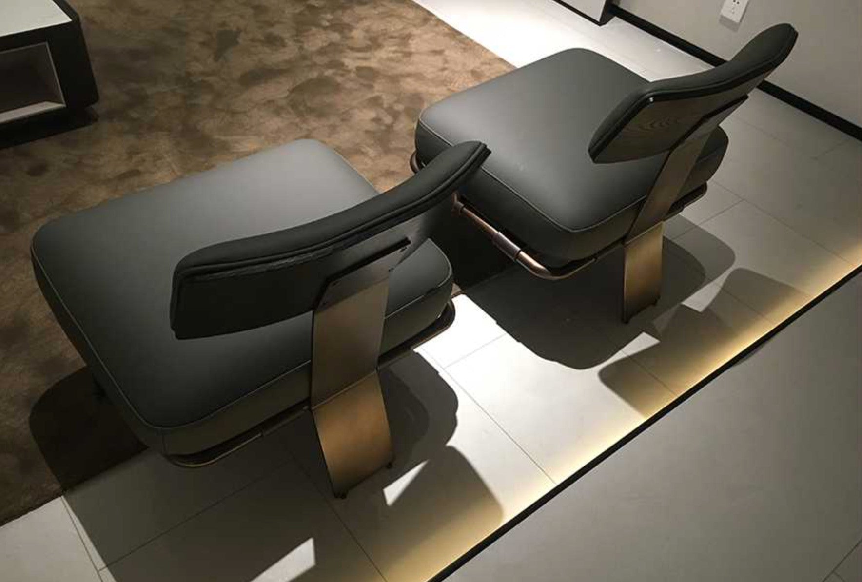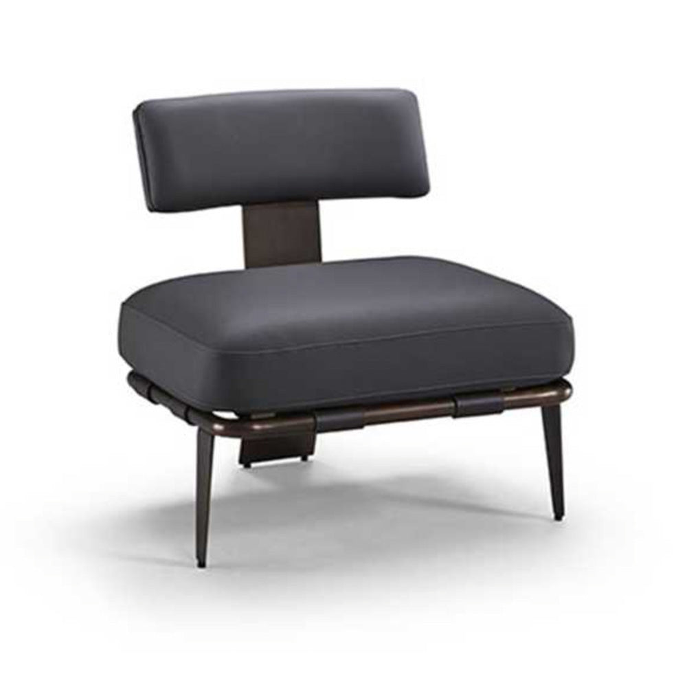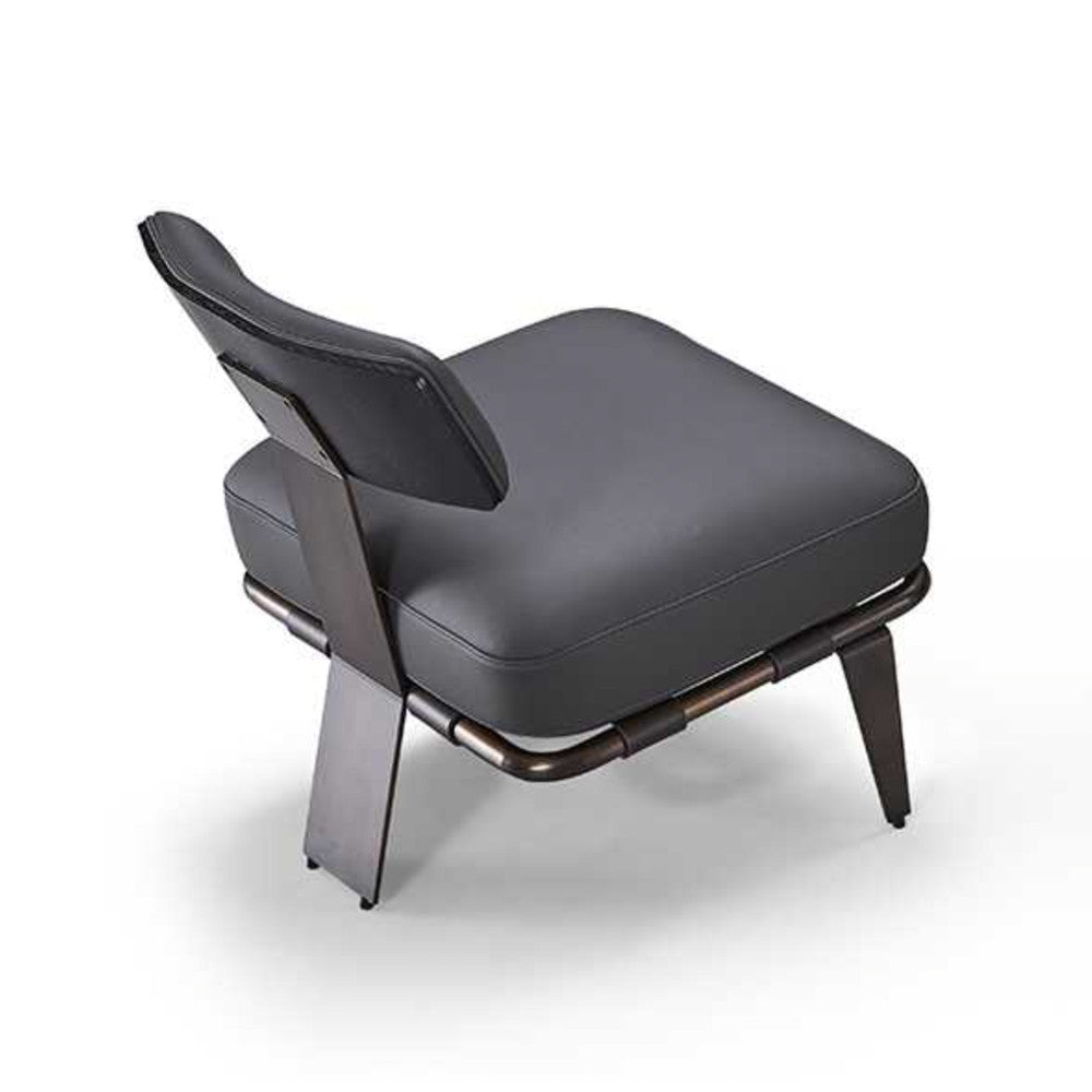 The robotic quality of the Hedda accent chairs is smartly balanced by the luxury leather seating and backrest that promise a comfortable experience. Moreover, this ergonomic design strengthens the formal aesthetic of this piece with a strong gray color and a hardware frame that carries a chic industrial character.