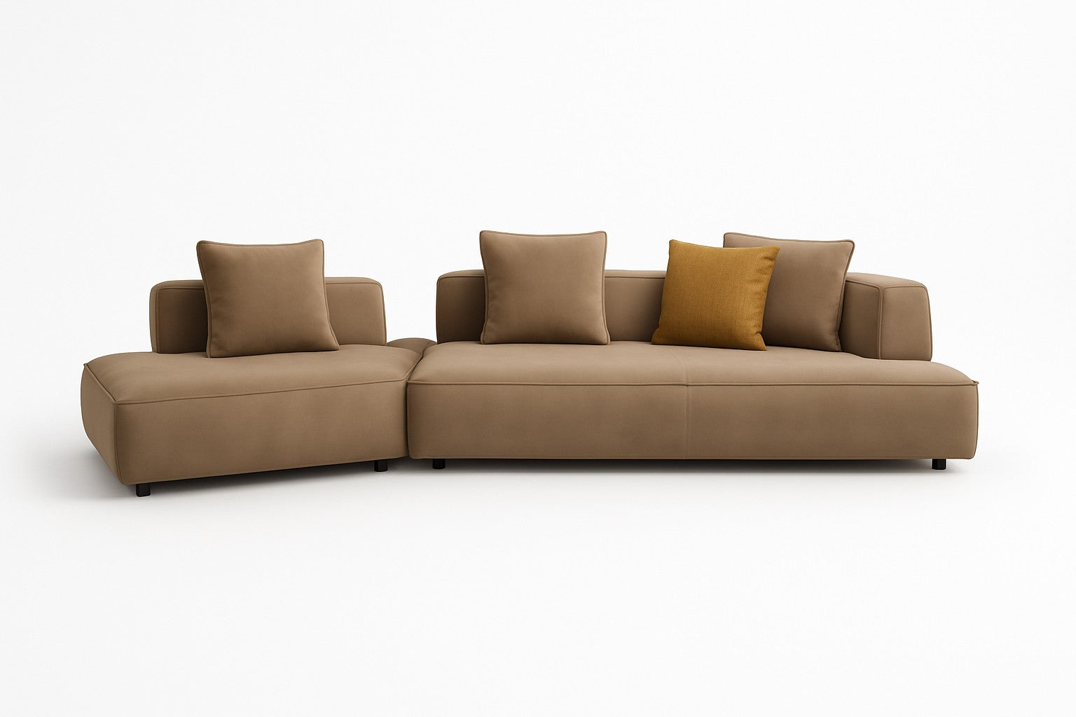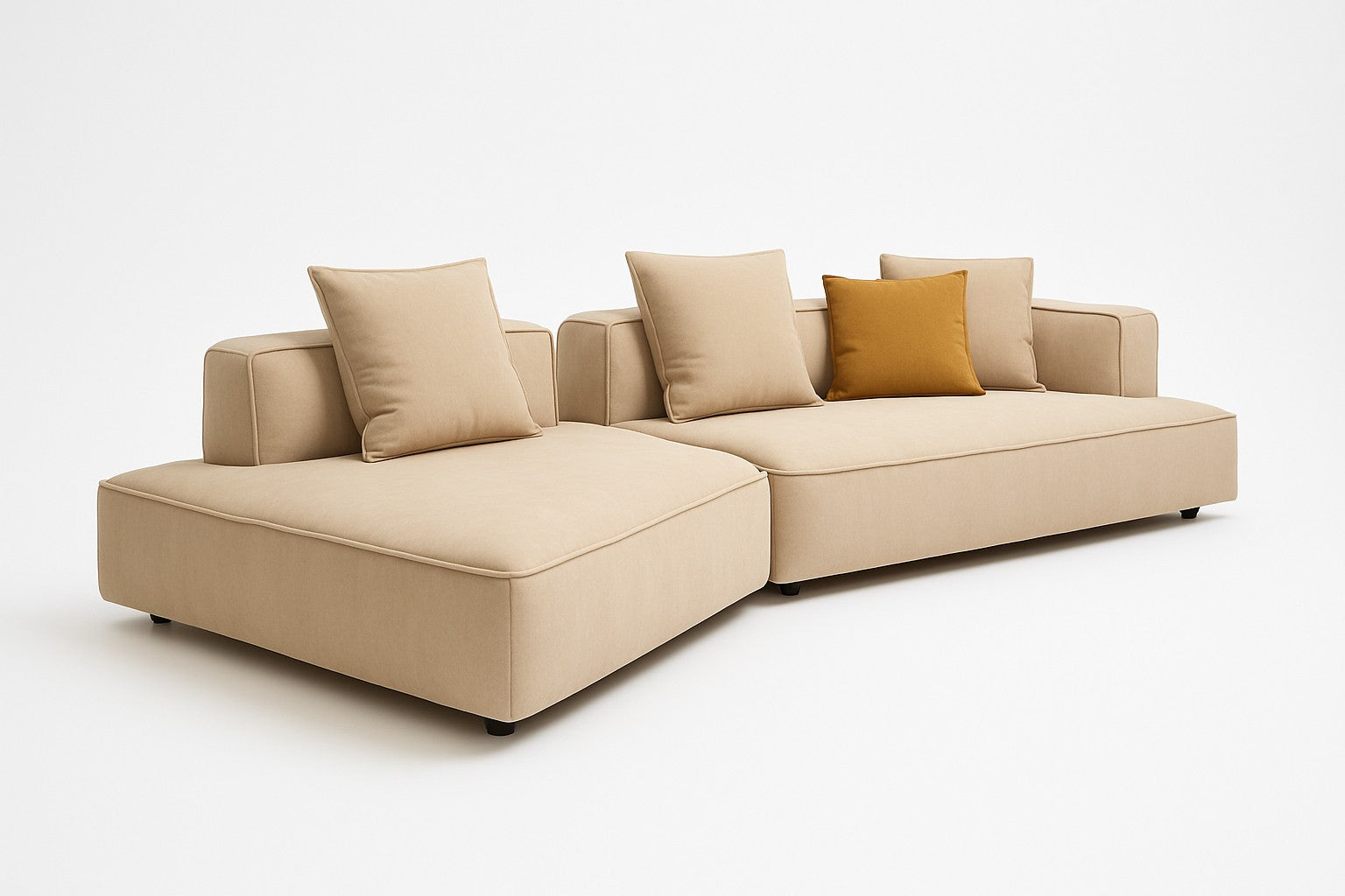 Structure: Polished solid pine wood and by-products, Zig zag spring Seating: Multi-density polyurethane foam with an extra layer of feather down Backrest Cushion: feather down, foam Pillows: feather down Pre-cover: Polyester Final Cover: Linen Cotton Fabric Washable: Yes Customizable: Yes Functions: Adjustable back
