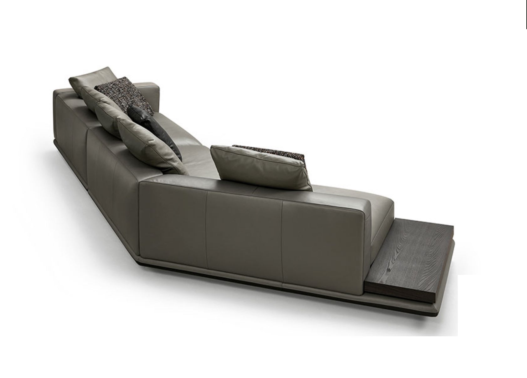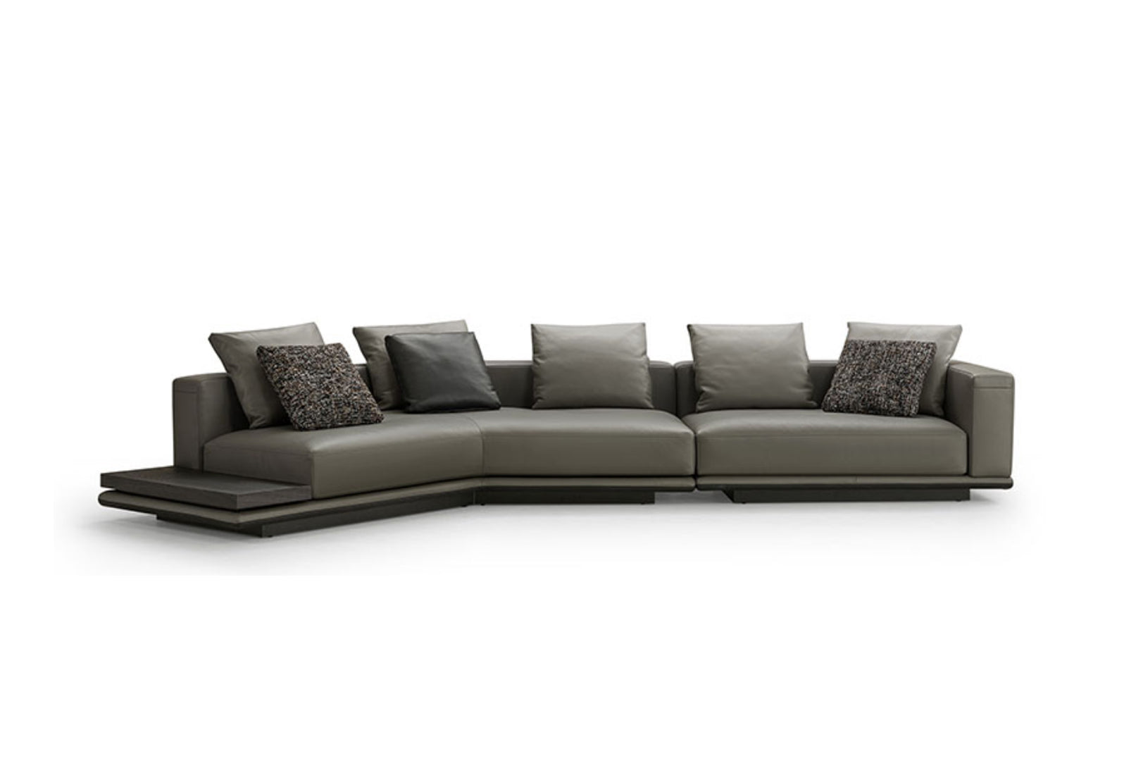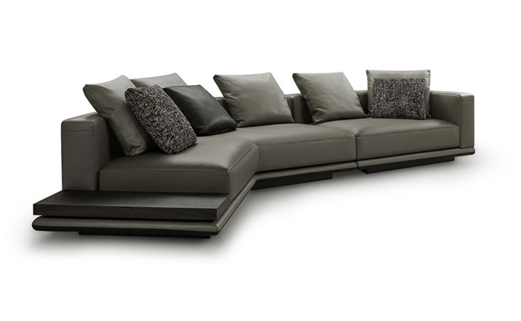Modules with extended seats, integrated slopes, or built-in coffee tables allow fluid layouts tailored to any space. Select versions include projecting bases that double as functional shelves.