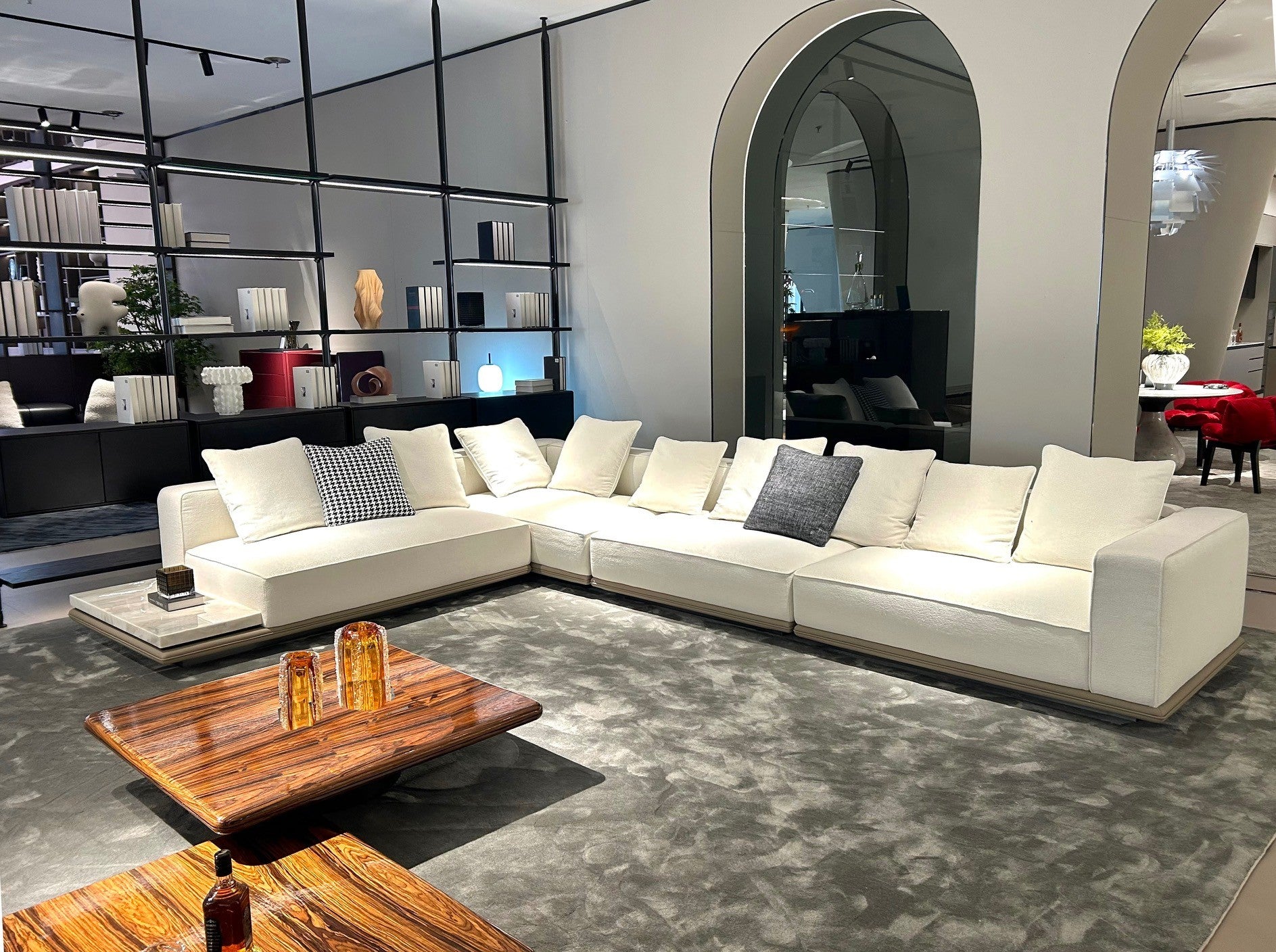 The Bartolommeo Sofa is a modular seating system defined by clean geometry and bold proportions. Elevated 7 cm on a recessed black metal plinth, it creates the effect of floating above the floor while supporting generously padded cushions.