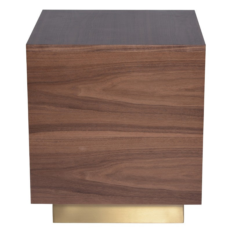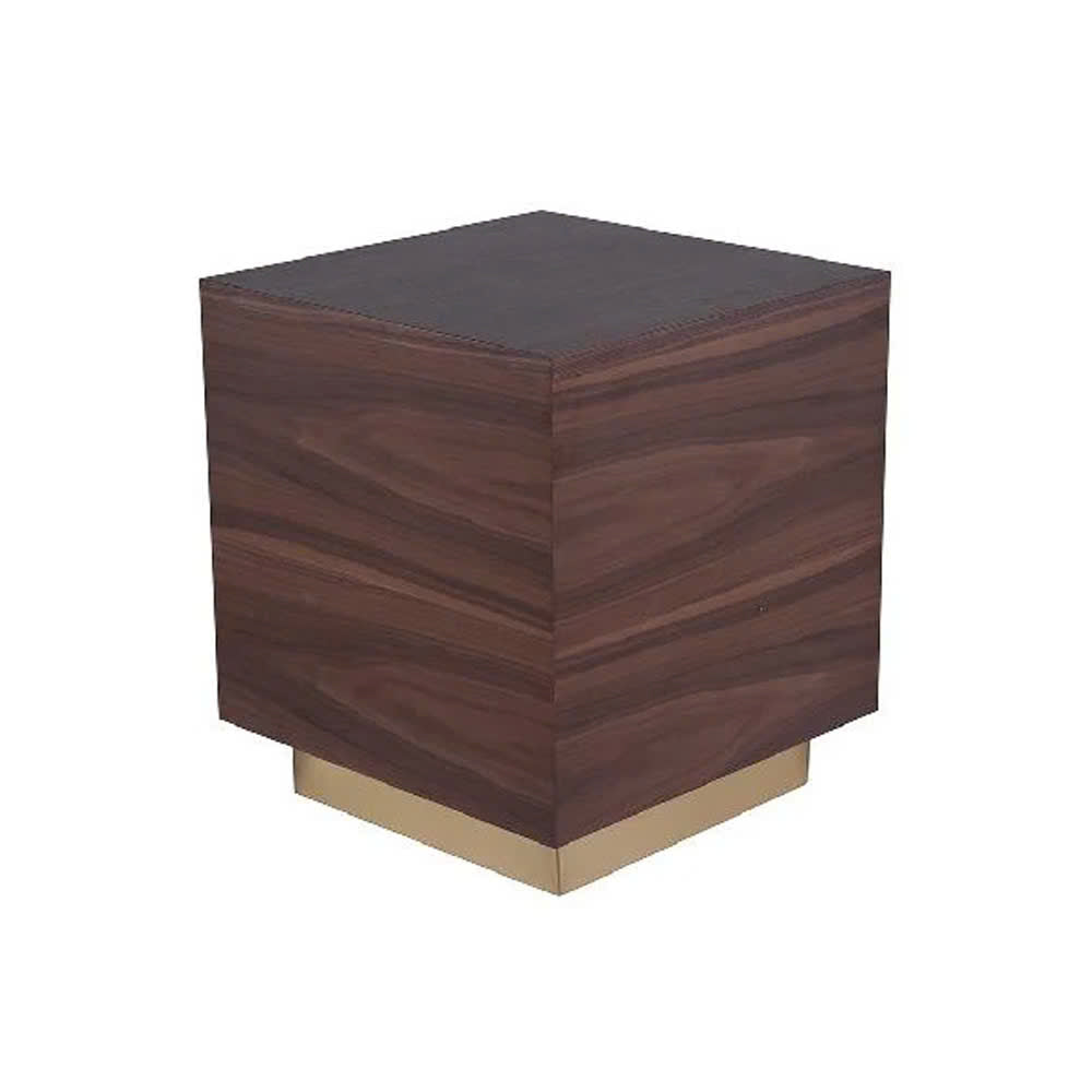 The Benjamin side table is a wooden classic. It is a confident living room piece that's sturdy, stylish, and very functional. Its striking cube form appears to be floating under its base support. It features a walnut finish in a beautiful contemporary design aesthetics. It's modern with elements of rustic and minimalist, making it very versatile and suitable for different kinds of interior. It's functional, simply elegant, and charming - a side table fit for a luxury modern home.