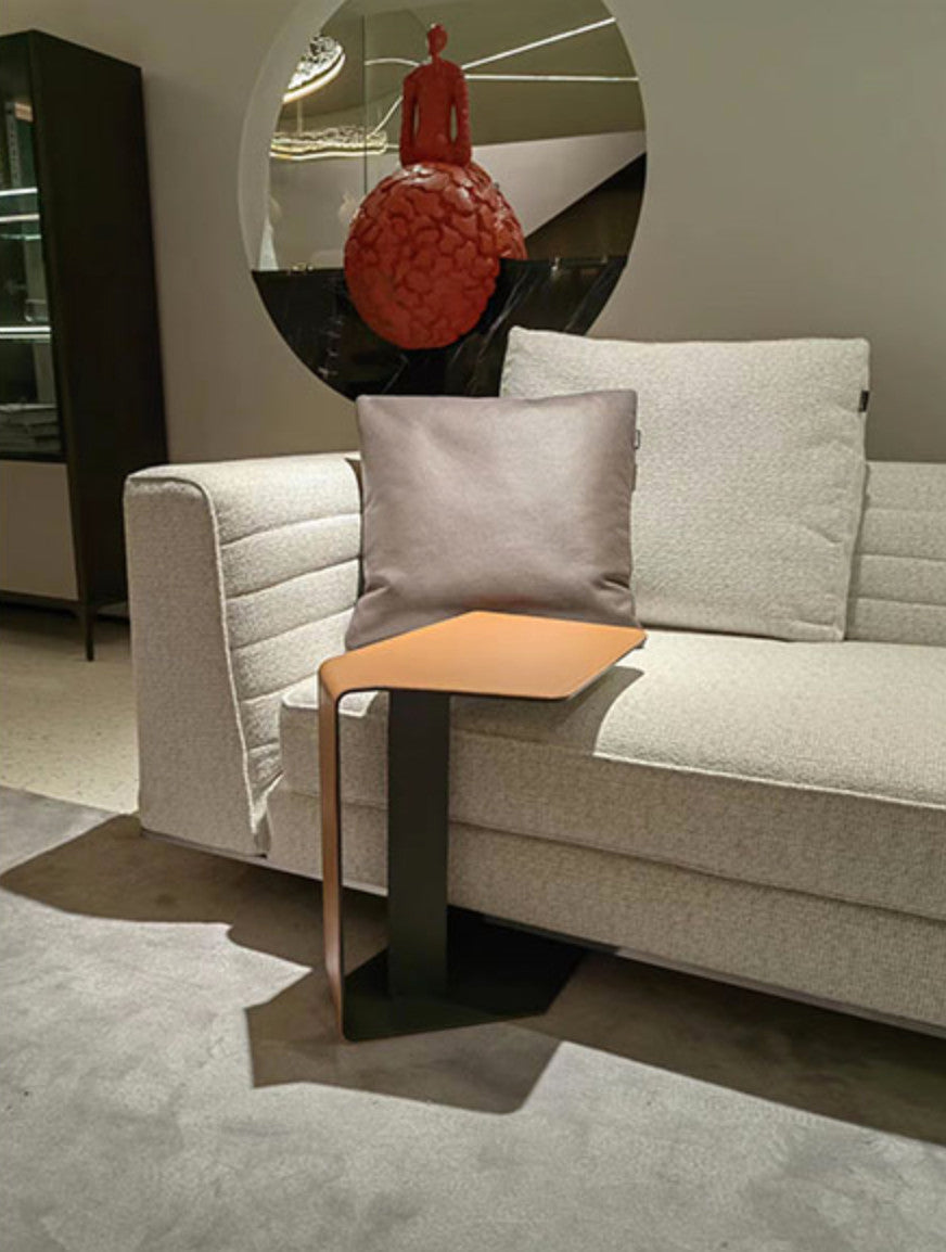 Caught in a permanent balancing act, the Berlin Coffee Table surprises us with its unconventional c-shape design that has been crafted for optimal use in combination with other pieces such as an armchair or sofa. Its hidden strength lies in the metal base hidden beneath a formal and sophisticated leather covering that adds a unique and individual character to this space-saving table. In fact, the simple design and selective use of materials renders this piece especially useful for a myriad of indoor layout combinations since it can be easily rearranged as the occasion requires.