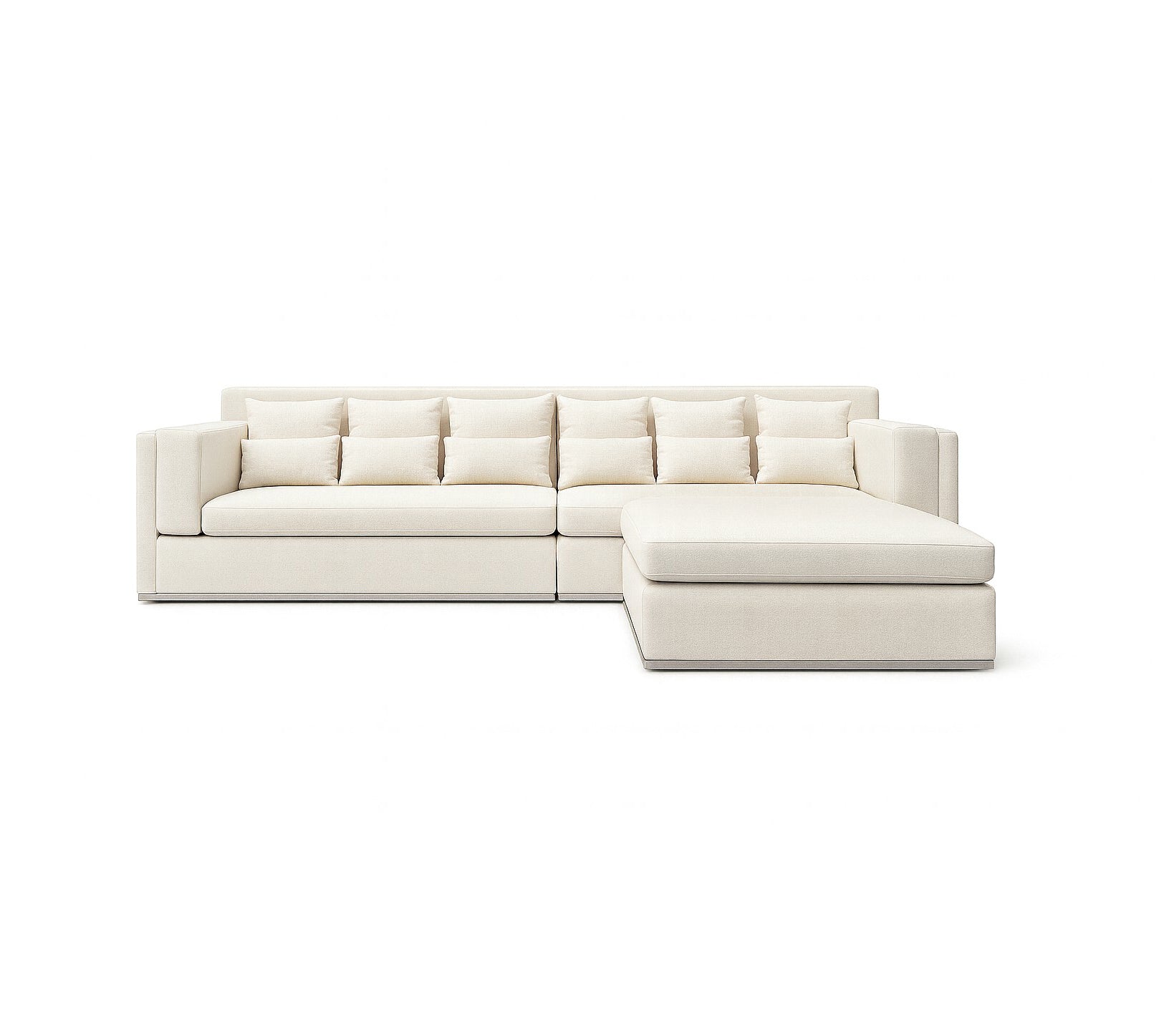 One thing that this sofa is known off, is proportions; something that the designer developed and perfected over time.The geometric but body conscious design, is stylish, elegant and sexy, for any kind of events. The square shelter arm design, features-quality frame and tailoring, for that sophisticated crisp appearance you are looking for. Deep and suitable for all kind of heights and sizes, is extremely comfortable; even though its minimal appearance might seem misleading. A KMP Furniture Exclusive! - Solid, hard wood Birch frame, reinforced for durability and extra stability -interlocking joists - High density/resiliency polyurethane foam is used for the seat; over a cross webbing system - Chromed finished steel base runs across frame - Upholstered and precisely stitched in a fabric of your choice - Removable sofa covers ; For you convenience additional covers in a variety of colors and fabrics are available and sold separately - Comes with a number of down-filled pillows. Can be customized to the size that you wish! Item#  FC-006 Size:  W132" x D44" x H31"
