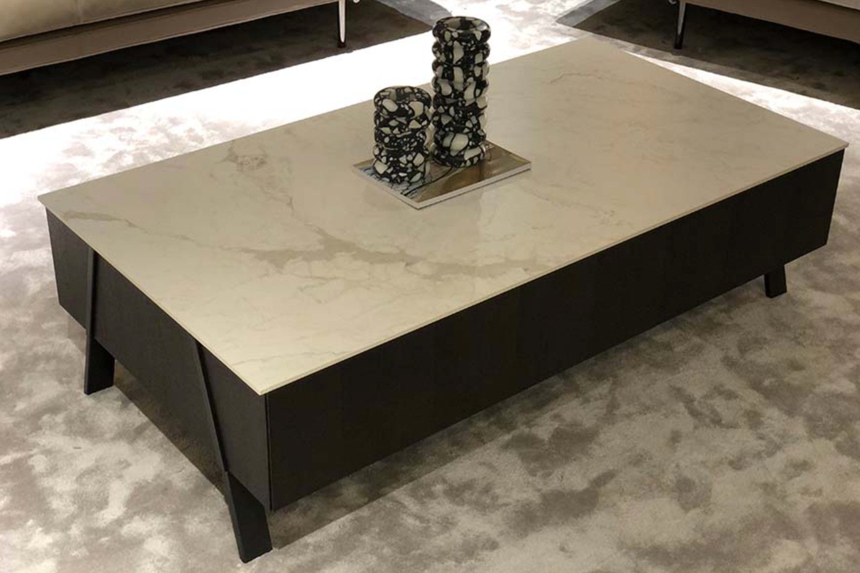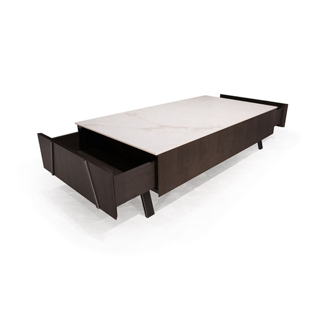 There's more than meets the eye within the Buenos Aires Coffee Table despite the minimal design and neat appearance. In fact, the ivory-like texture of its stone top provides ample space for your coffee and tea, but it also serves as a lid for storage. The oak veneer side panels are actually drawers that blend seamlessly with the table's sleek surface placed above four camouflaged steel legs.