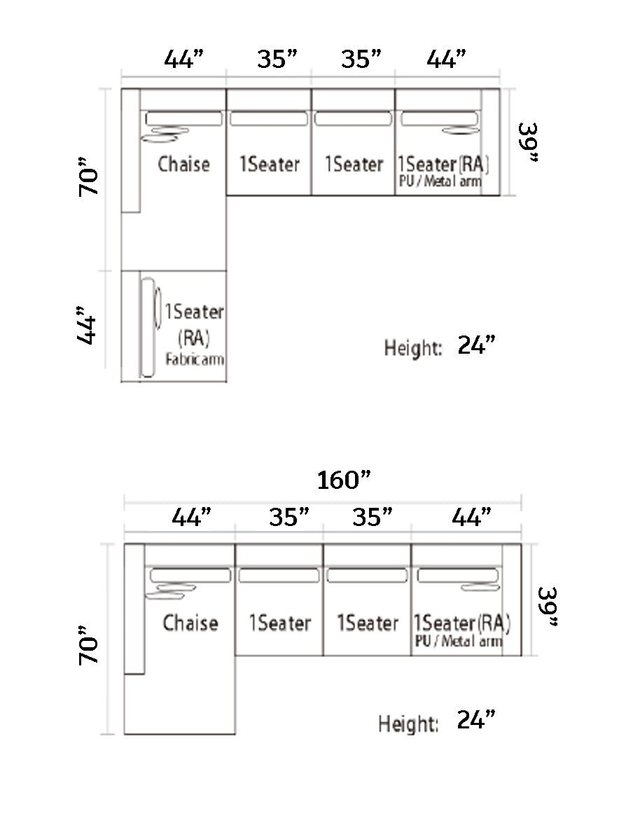 This adds to the tidy and compact image of the piece. Lastly, by combining different exteriors, a light covering over a dark base and backrest, it creates a neat composition of contrasts that is typical of modern design.