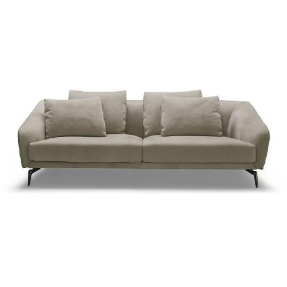 In addition, small details such as the slight curve of the back extending to a downwards armrest, the delicate sofa legs, and thick padded seating, express a considerate and unified design for any contemporary interior.