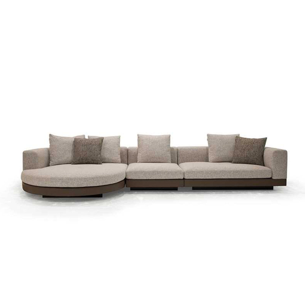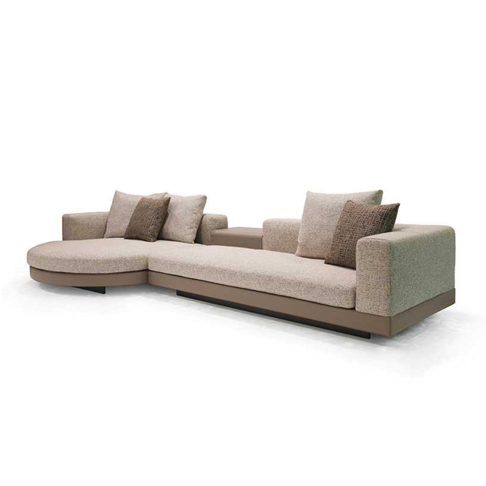 Combine the sharpness of squares with the smoothness of round corners and you will have in front of you none other than the Chloe chaise sofa. Its unexpected form creates a refreshing sense of dynamism that pairs well with the thick texture of the upholstery. Moreover, the sturdy back and armrests provide a practical and ergonomic design where a comfortable group of four can spend time together.