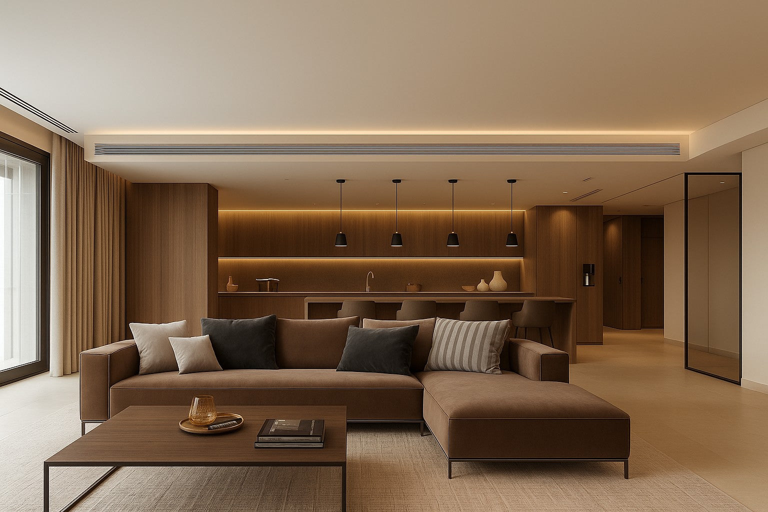 Upholstered in a rich, caramel-toned velvet, the Cielo offers both tactile warmth and an understated sheen that enhances its premium appeal. A curated ensemble of cushions in tonal camel and deeper espresso-brown shades adds depth and dimension, creating a layered, luxurious aesthetic. Altogether, the Cielo Sectional stands as a sophisticated centerpiece—glamorous yet serene, engineered with technical precision while radiating effortless elegance.