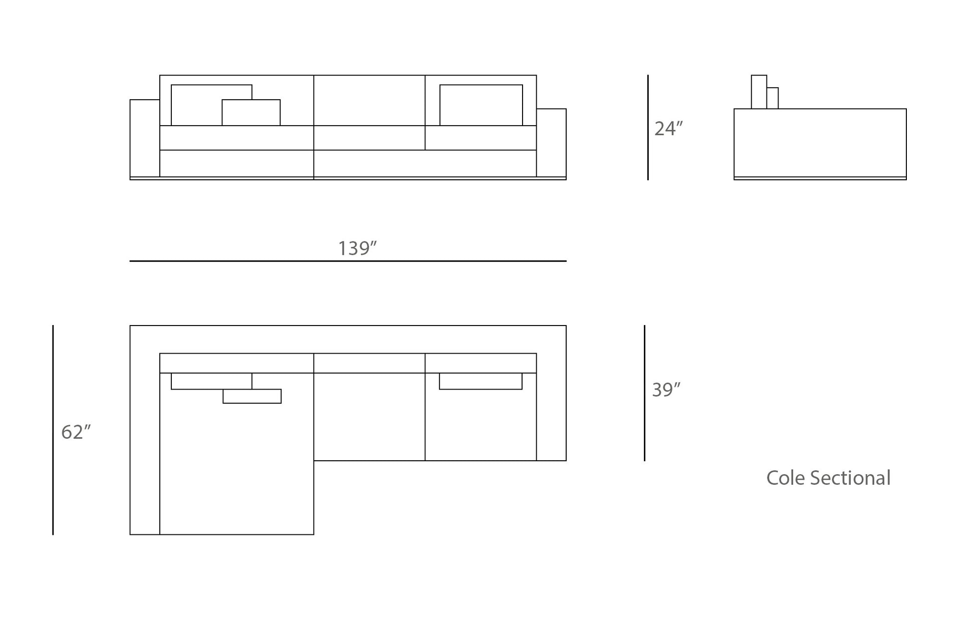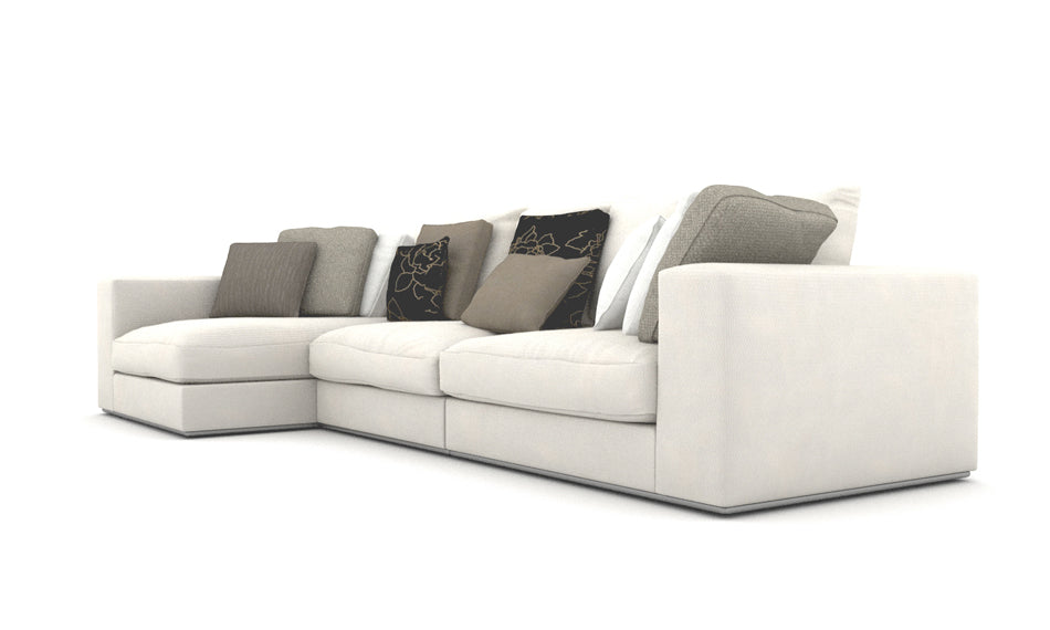 Designed carefully to accommodate the human body our Cole sectional is a work of art on its own. Its theatrical appearance is followed by geometrical lines and a comfortable seating experience hard to surpass. Excessive layers of down feathers wrap the high density foam to provide a superb; long-lasting seating experience for many years to come. Thechrome steel base with recessed legs elevates the sofa above ground; just enough to give an optical illusion of floating in space . Its wider than normal chaise provides a lounging corner large enough for two! Gently angled backrests filled in down leave enough space for a full depth seating paired with an elevated armrest to maximize comfort. For maximum aesthetics the Cole sectional can be customized to meet your space proportions.