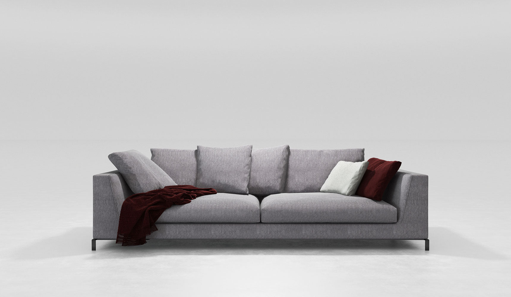 Elevate your living room or den with this contemporary slate gray sofa. Professionally upholstered in a unique colored gray fabric, this sofa has luxuriously comfortable seating on top of being artfully designed. A minimalistic base only features thin, squared legs that reach slightly beyond the couch's frame.