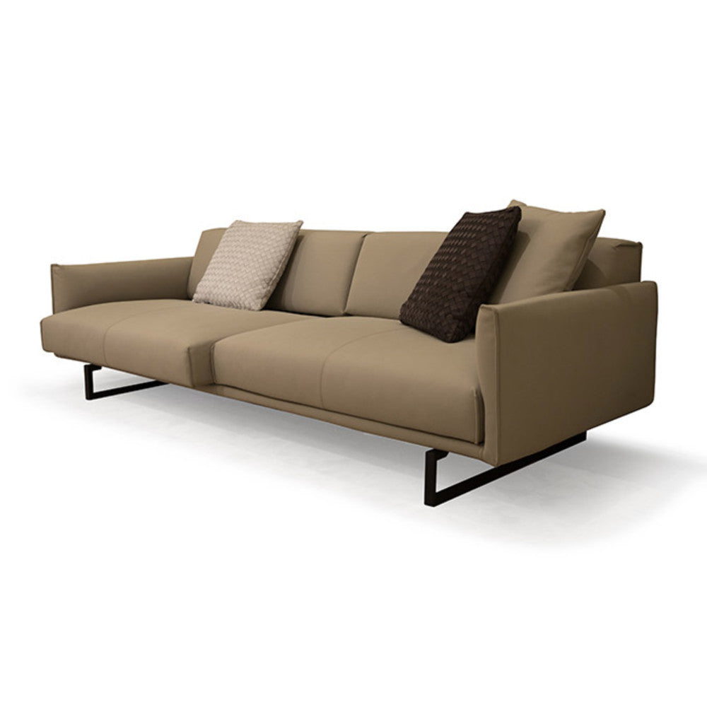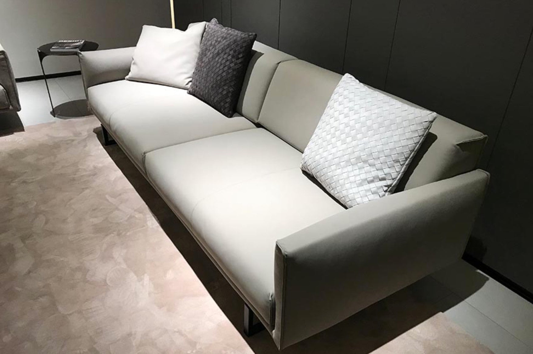 This straightforward three seater sofa Evans depicts a simplified version of its counterpart, the Baron Pro. The difference lies in the clear cut angles that attach to the smooth and uninterrupted leather surface. Its slim armrests and low back make a light addition to your interior that takes up less visual space and instead focuses on providing maximum comfort.