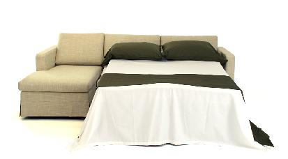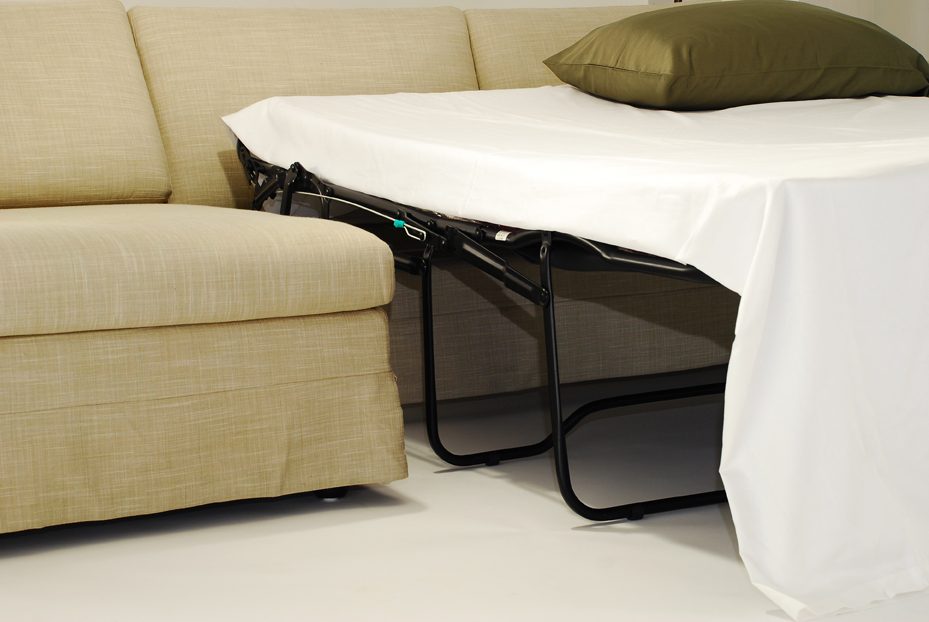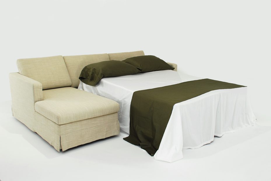 - High density-resiliency foam seat and back cushions hide an extra strong spring system underneath for additional durability and comfort. - Hand made reinforced hard-wood frame with interlocking joists. - Recessed round wooden legs are hidden by the sofas lower upholstery. Removable cushion and frame covers can be dry-cleaned or replaced (separate covers sold separately) - The chaise dimensions are L60 x W29 -The hidden, tubular bed frame, along with the mattress, measure L72 x W53 , when opened; unveiling a very comfortable bed for your guests. The sliding mechanism of the bed is attached to the frame of the sofa and effortlessly opens the bed with a single move. The mattress of the bed is included. - The total width of the sofa when the bed opens is 86.