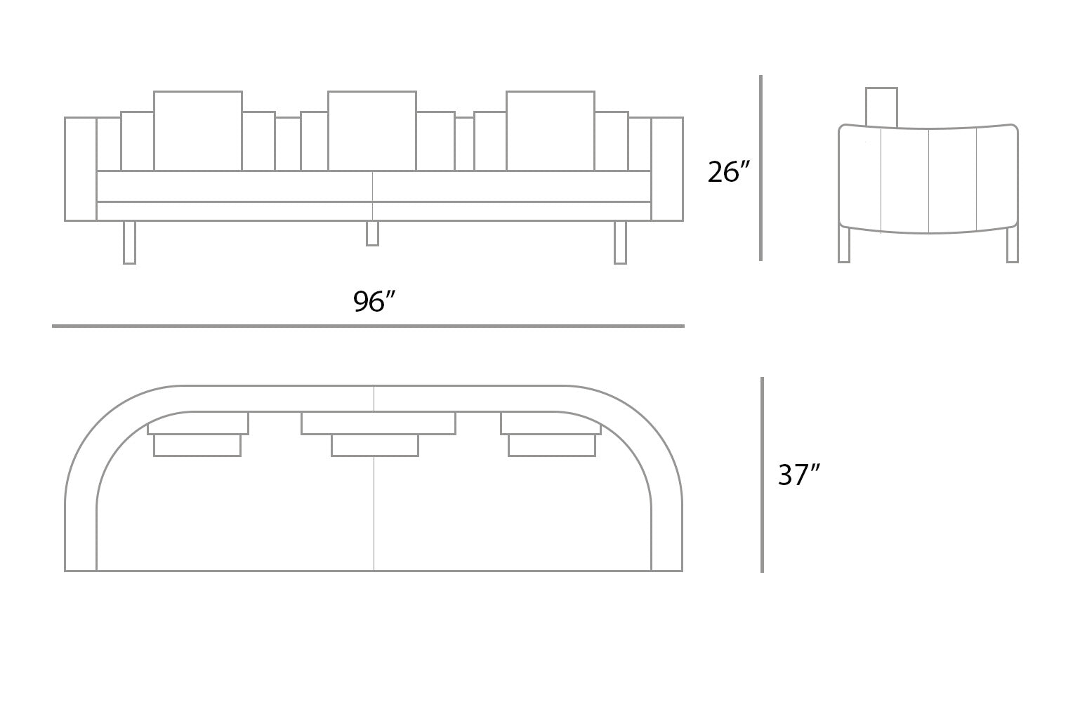 3 seater with 2 arms: L96" x W37" x H26" Chaise: L100" x W49" x H26"