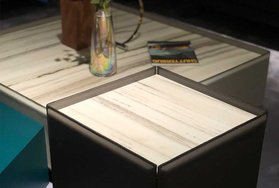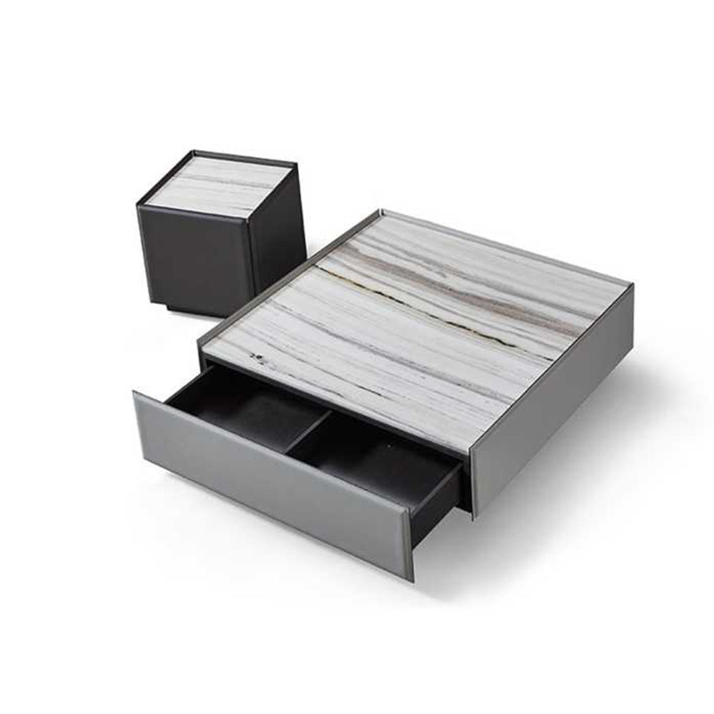 Color: dark gray and Light gray Top: Marble-top Structure & Base: Medium-density fiber panel veneered + Saddle leather