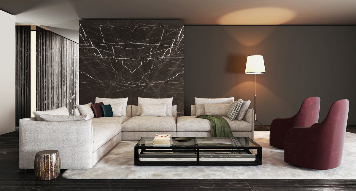 Giacomos back cushions are filled with a soft blend of down and feathers. Its deep seat depth suits various lounging positions, and the L-shape design maximizes your interior space. Marie Antoinette would be jealous!