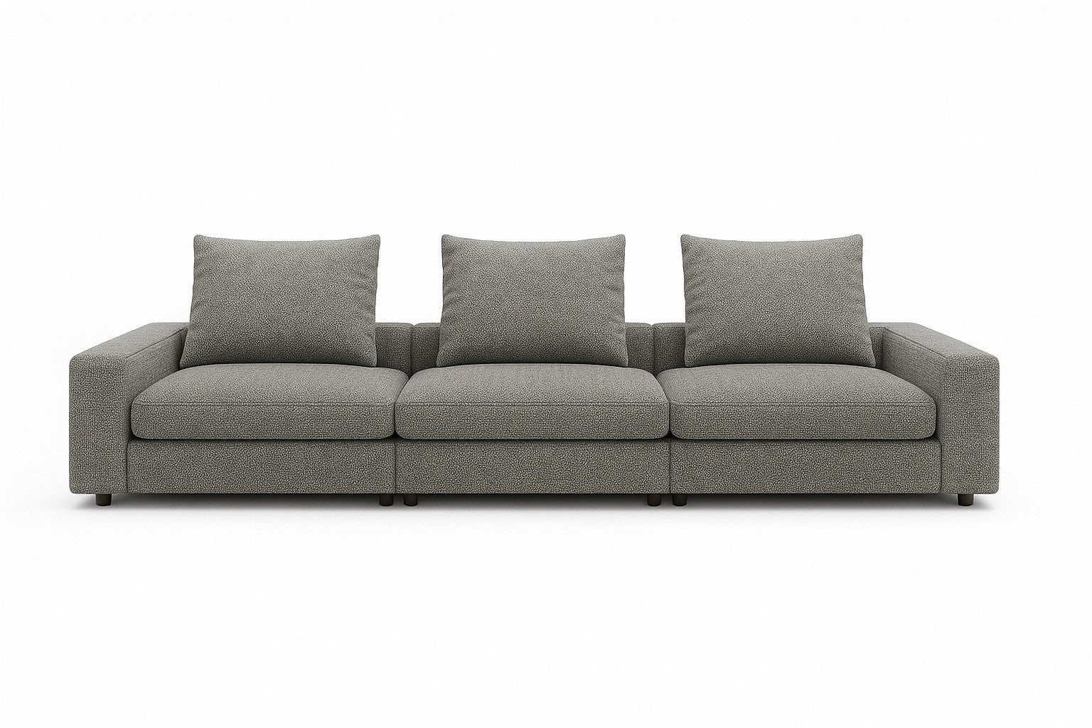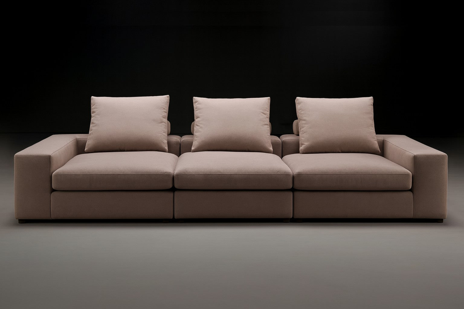 Three cushions, three pillow backs how interesting can a sofa be? Our answer plenty! This creative design does away with those nasty pillows that never seem to fit right on a pillow back sofa. So instead of providing the support you need, they are stacked along the back not straight, not comfortable and never staying in their place! This sofa is the perfect three seater one plush pillow per seat. There's no quandary about which cushion belongs where or fighting over that last odd pillow in your fruitless struggle to be comfortable