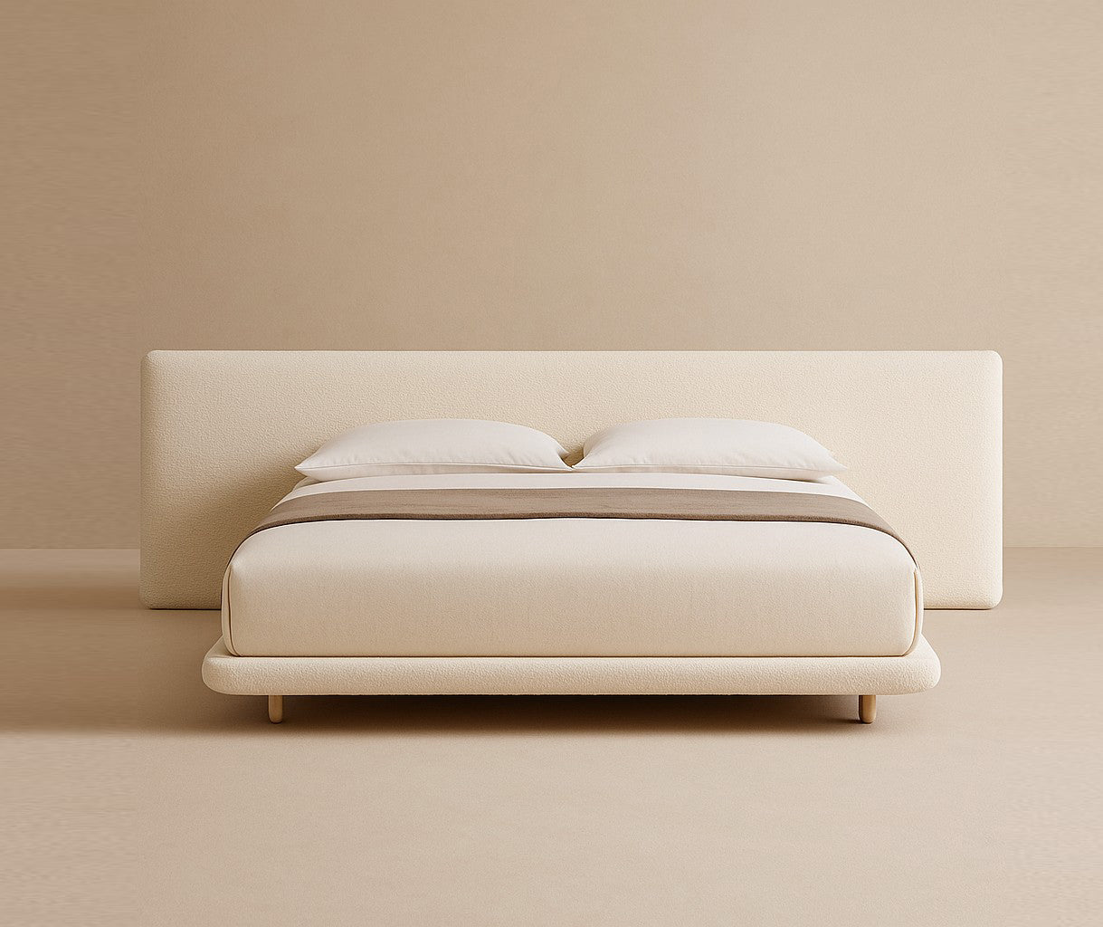 The Ligne Bed is a masterclass in sculptural minimalism—where architecture meets comfort with effortless grace. Its sleek, extended headboard and soft, continuous lines evoke a floating effect, creating a serene visual balance that feels both grounded and ethereal. The tactile beige upholstery, with its refined texture, lends warmth and sophistication, while the seamless integration of subtle rounded edges softens its modern geometry.