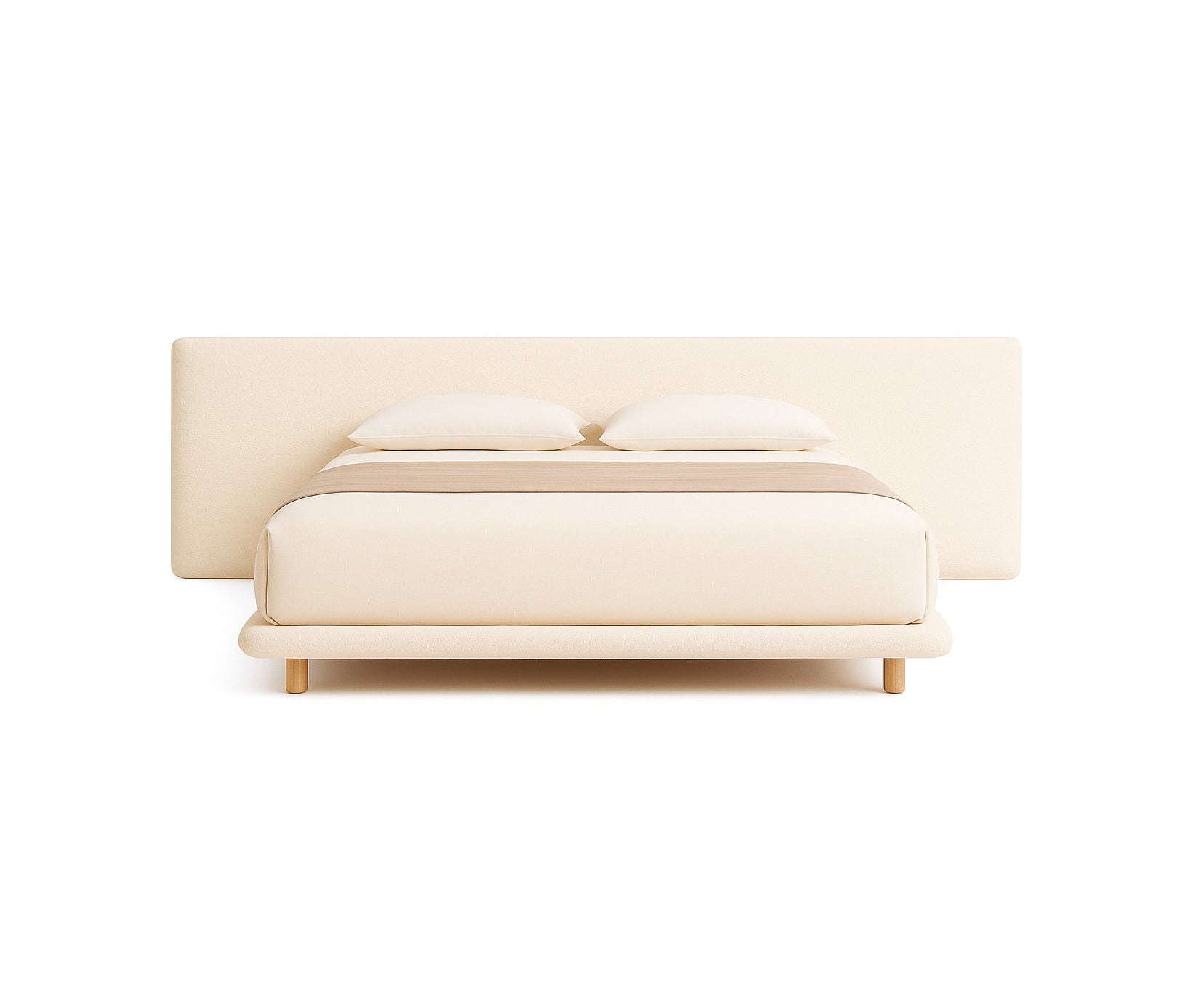 Headboard: Full-width headboard with a continuous upholstered finish, designed to visually elongate and anchor the room.