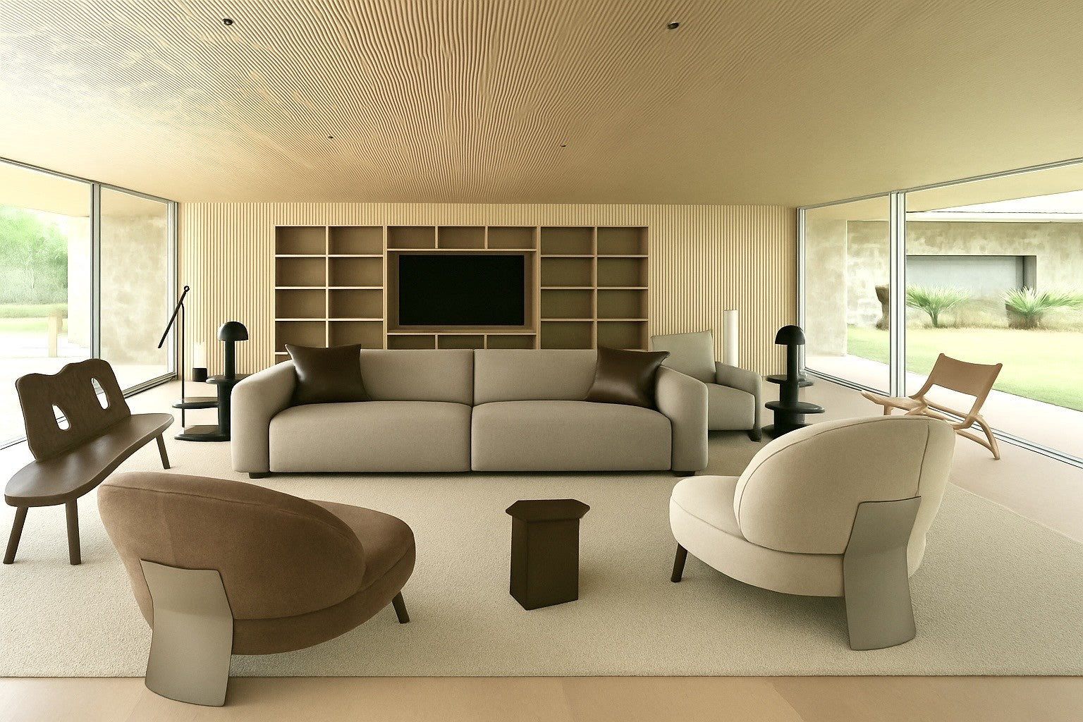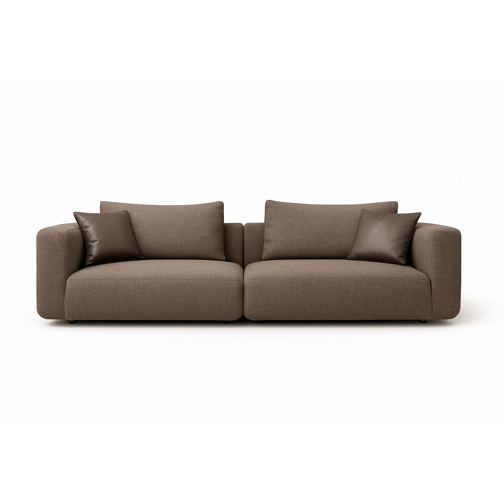 Minimalism and dynamism form part of the Maxing sofa's identity which hovers between mid-century modern design and straightforward practicality. Its compact form is held together by solid pine wood covered by an extra layer of feather down that embraces your body like a glove. These features are nicely wrapped in linen upholstery that features the natural patterns of its criss-crossing lines, adding a visual appeal that breaks away from a monochrome approach. Furthermore, the adjustable back and ample armrests offer the perfect space to enjoy a cozy movie night or evening conversations with your loved ones.