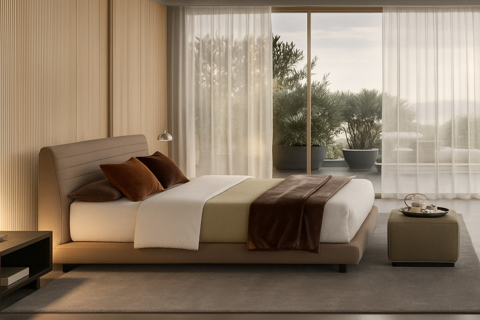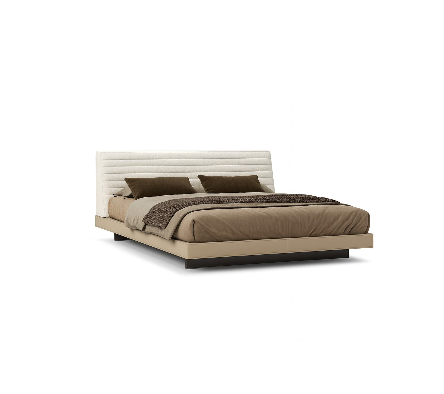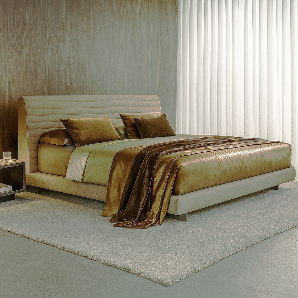 The Odet bed comes as pure and simple as a bed can be. With a compact body dressed in an inviting quilted design made from high quality linen and cotton. Its plush textured headboard creates the perfect setting for a private and uninterrupted sleep while the surrounding leather frame integrates a sense of modernity and durability. All the materials combined retain a neutral color palette and an emphasis on our sense of touch; thus creating a sensorial and dynamic product to accompany all our nights.