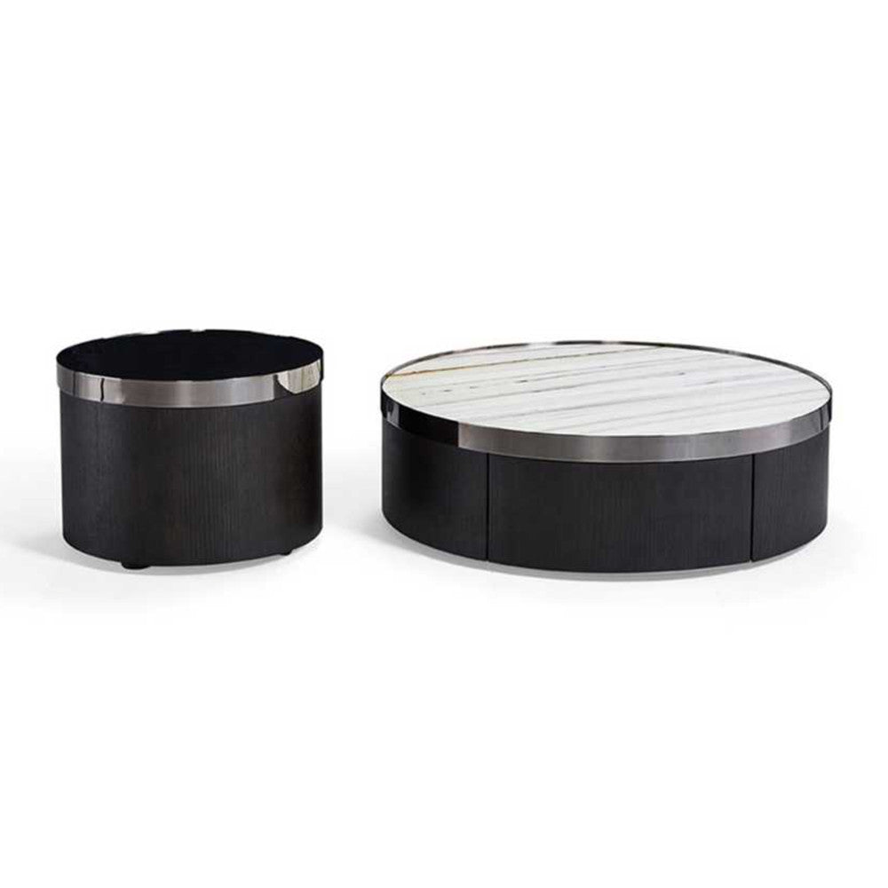 Just like a powerful drum set, the Padua Coffee Tables retain a strong circular shape with a low body wrapped by mirrored hardware edges and a warm oak exterior. The resemblance, however ends here as these tables carry a more delicate air with the addition of natural marble and tempered glass countertops. Both materials are available for your choosing, as the two can combine with a variety of modern and classic interior styles while adding a touch of sophistication. Consider this the ideal set for a chic interior that carries the essence of a popular and catchy melody.
