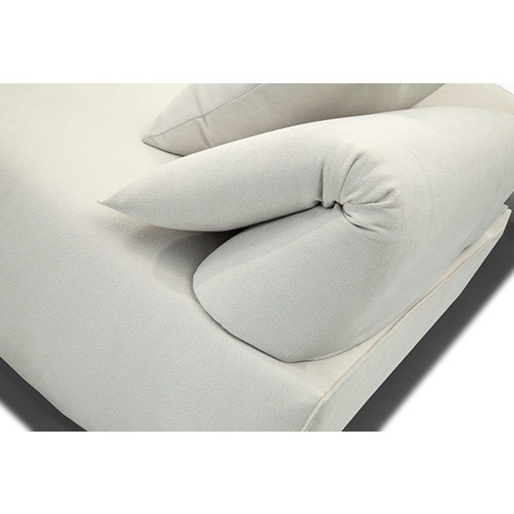 Moreover, this seemingly minimalist design can also transform itself with a foldable backrest that provides additional support when the occasion requires it. To end with this practical and refreshing design, the sofa’s format comes in a subtle curve that softens its square form for a pleasing sight.