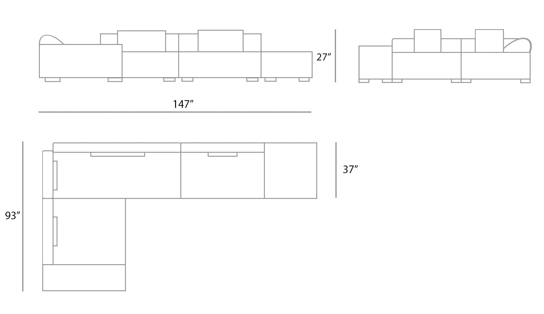 Corner: L63" x W37" x H26" Ottoman: L37" x W28" x H16"