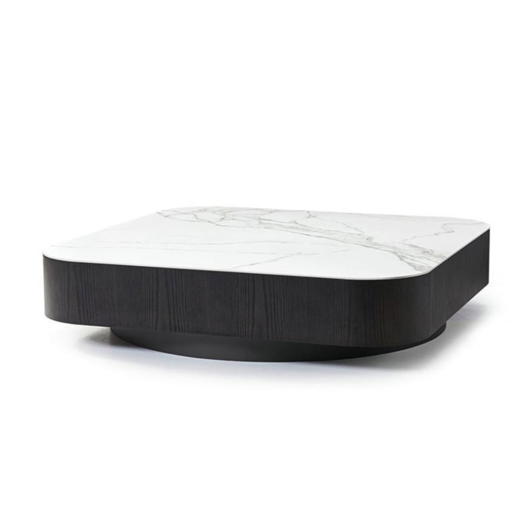 This table's charm speaks for itself as it commands the room's attention on its powerful form and futuristic charm. If you're adding a focal point, why not make it grand like this wide table, yet surprisingly refreshing in its simplicity. Few times does a piece make such a visible statement with a selective range of colors like the classic black and white, topped with the elegance of a marble surface. This coffee table can easily replace extra side furnishings as it embodies the perfect balance between size, contrasts, and straightforward practicality: all assets we can perceive with just one look.