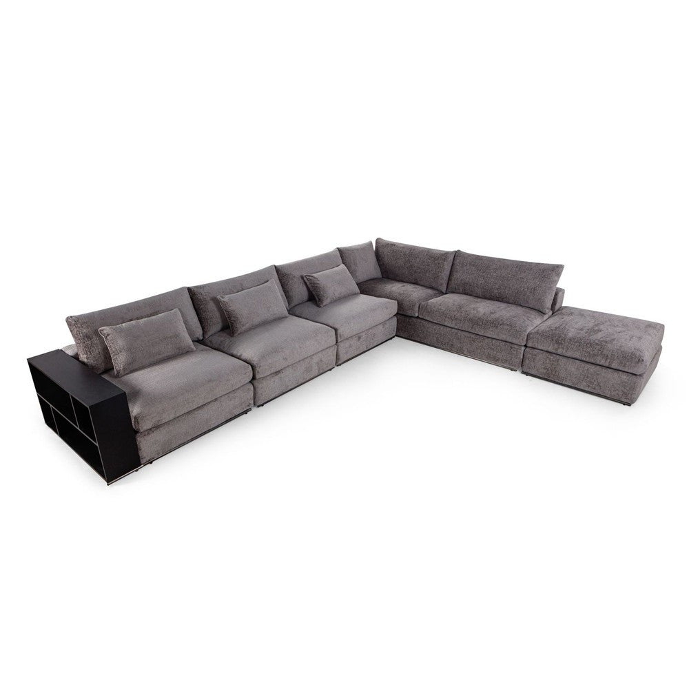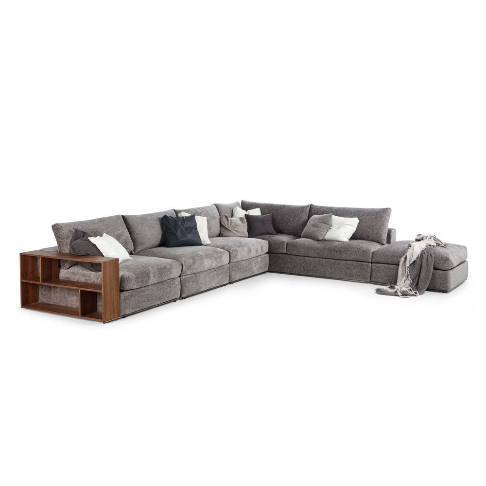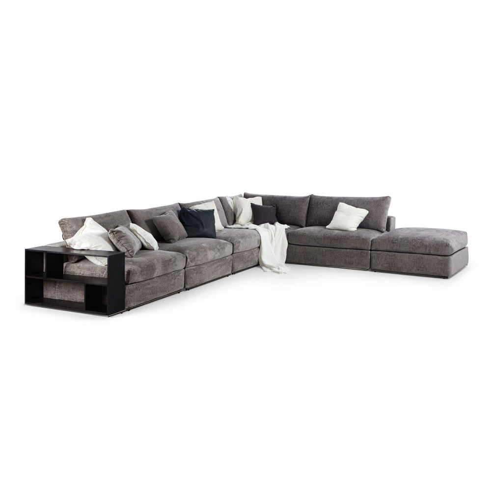 The inviting touch of velvet creates an attractive statement in any interior. For example, this dark large Rafa sectional sofa adds a touch of luxury with its shimmering upholstery while giving this classic fabric a modern twist. Considering the high-quality material and its sumptuous nature, the sofa's form takes on a more minimal approach that balances out the oversized length.