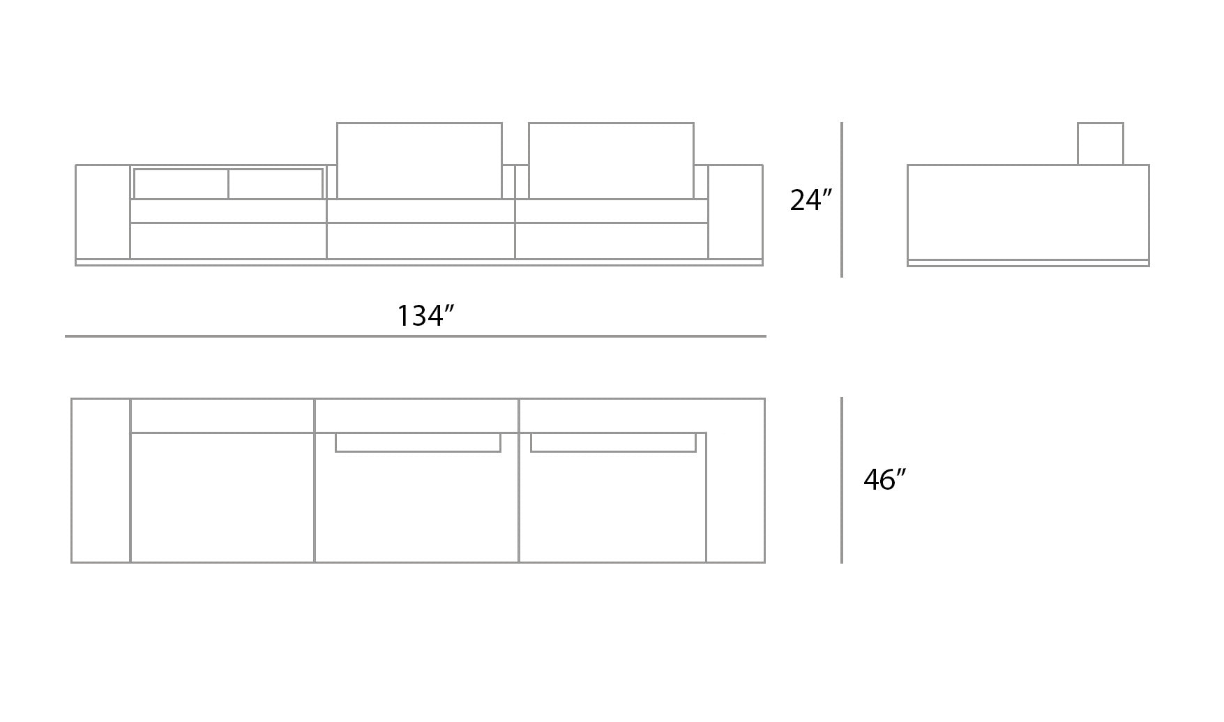 Size: Width: 134" Depth: 45.66" Height: 23.6
