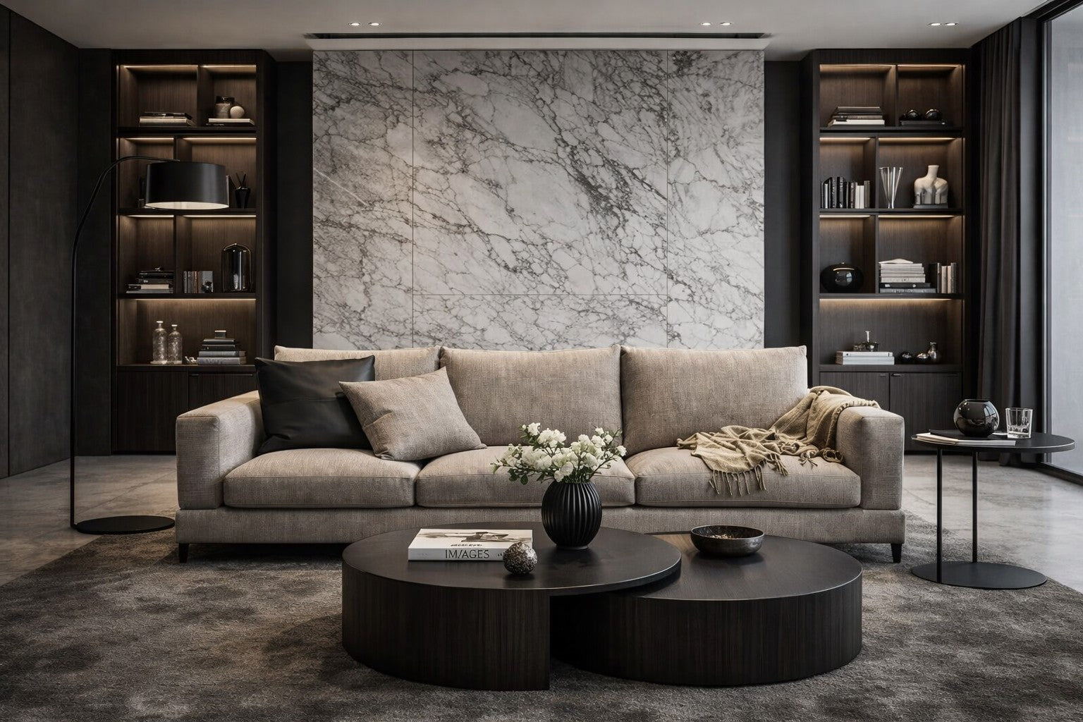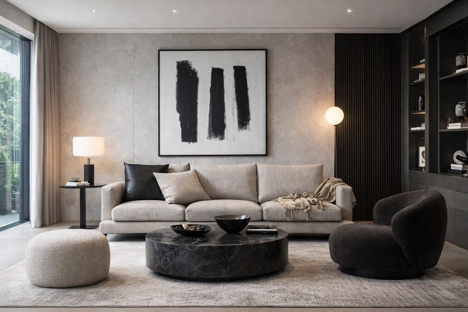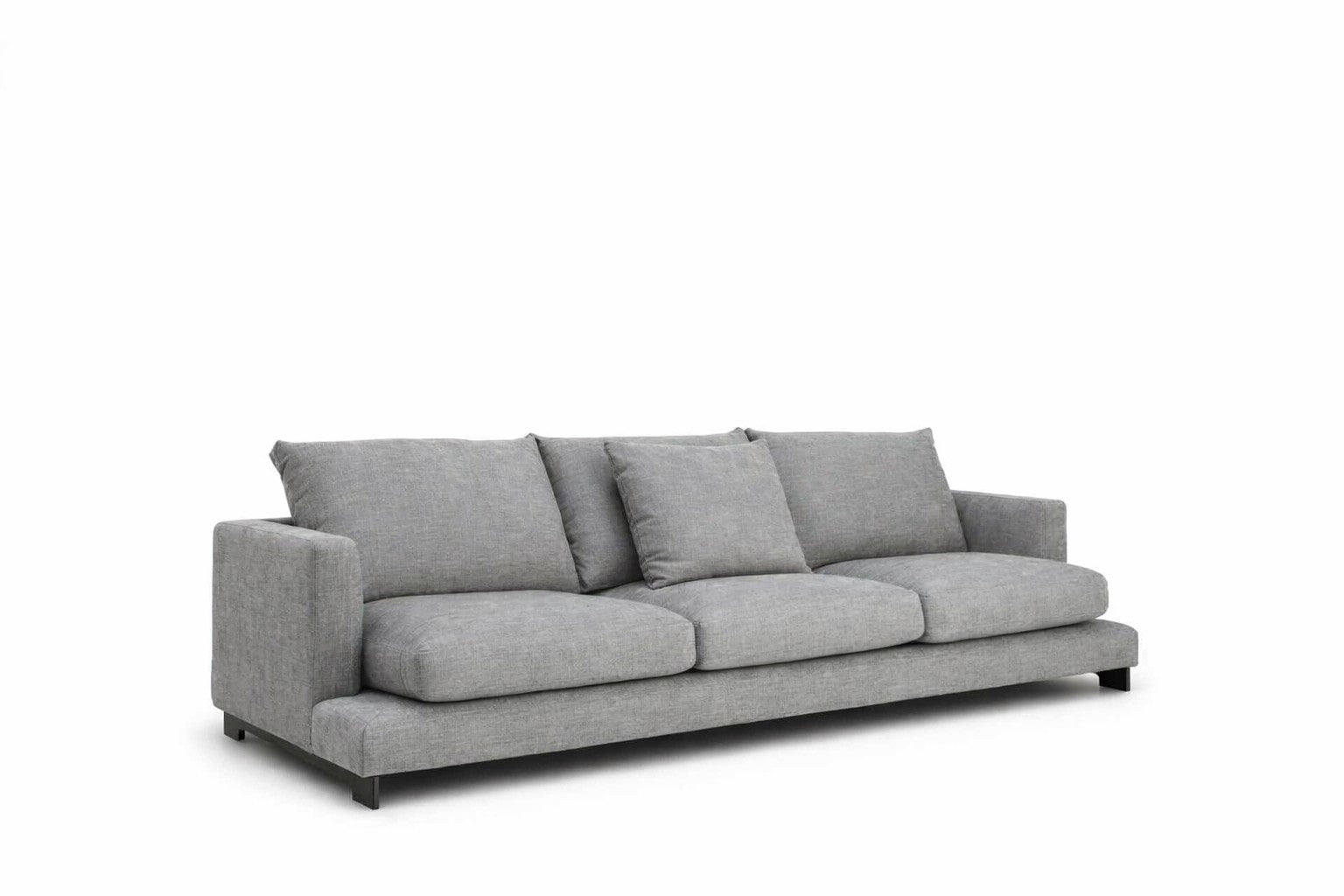Oversized cushions and set back arms give this contemporary sofa unique dimensions. Large, exaggerated pillows surpass the height of the sofa's back, making it appear that much more grand a piece. Piped seams on the sofa and cushions make for cleaner, more structured lines that are offset by the plushness of the pillows and seats. Minimalistic, metal legs finished in a dark coating complete the sofa's contemporary aesthetic, while still letting the sofa itself take center stage. Customize this piece by choosing between one of its luxurious upholstery colors. Accentuate with complementary pillows and a throw.