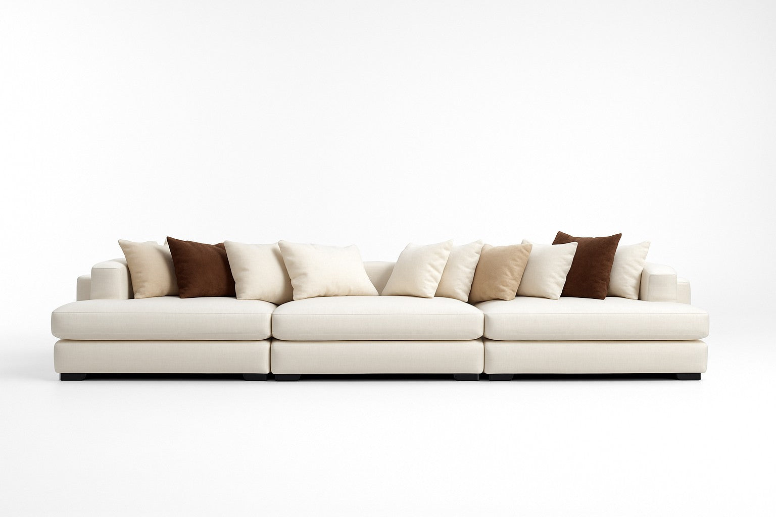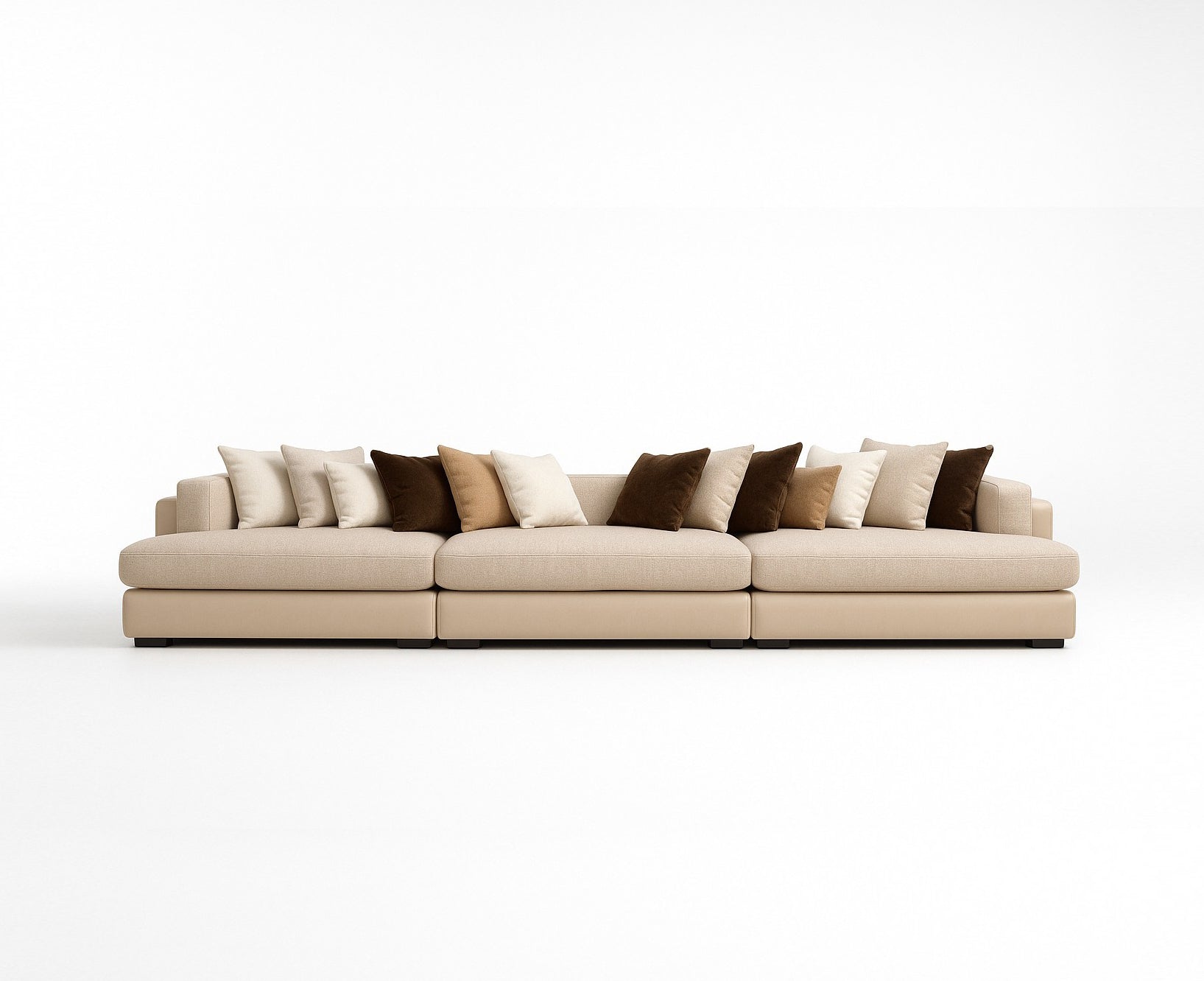 The Salermo sofa is upholstered in your choice of Trend fabrics. Trend Semi-aniline leather upholstery is also available. Comes with 18 back cushions. Additional fabric options available, ask your design consultant for more options.