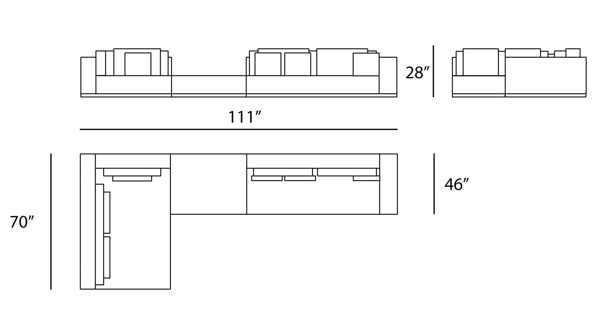 Size: L111" x W70" x H28"
