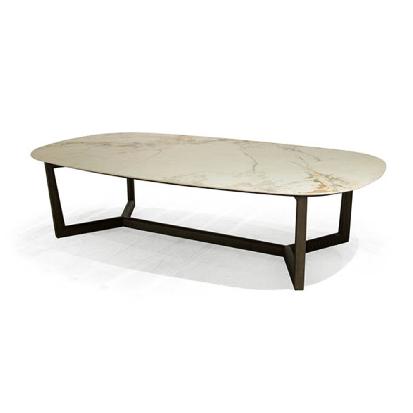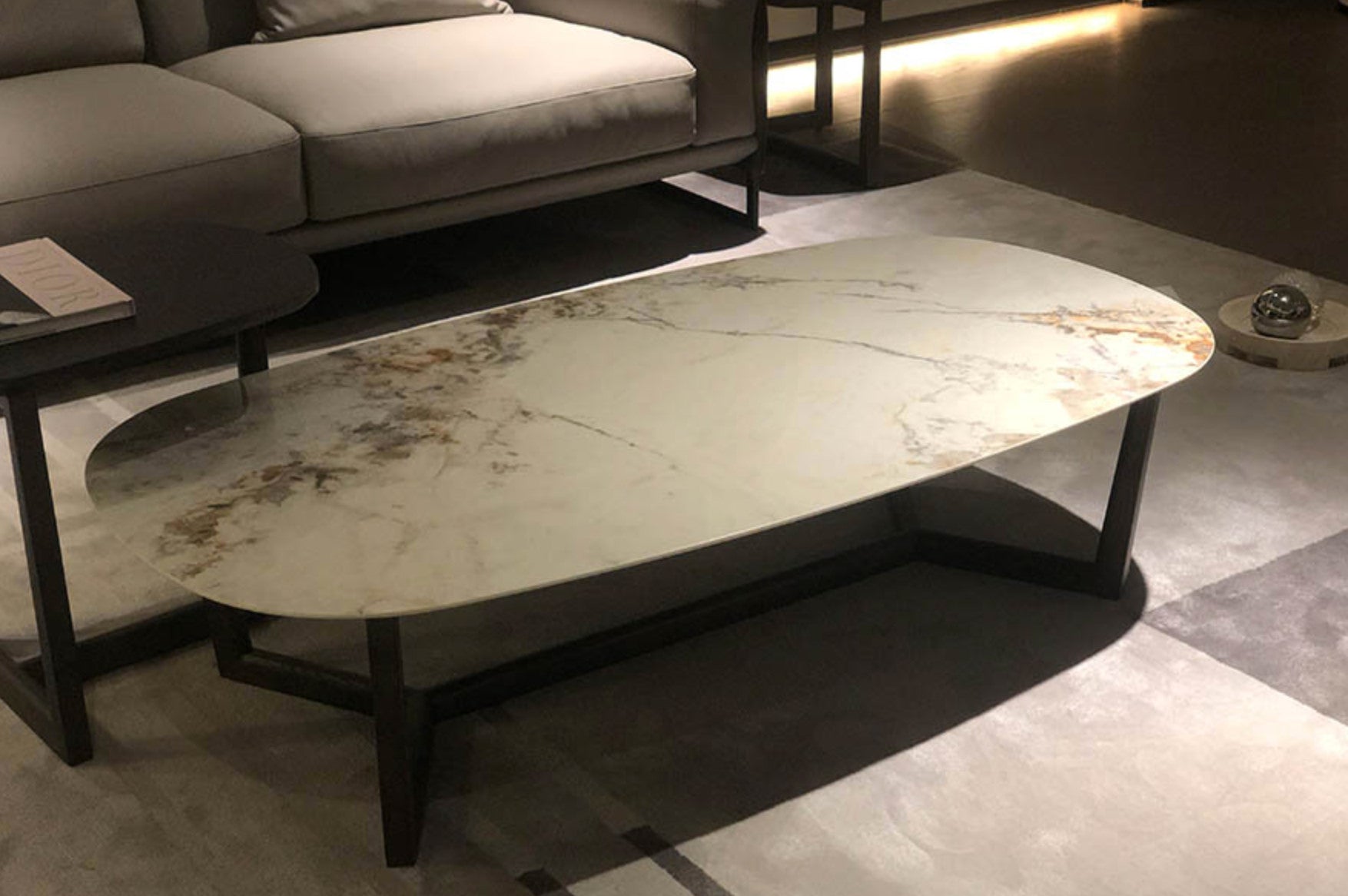 The modern Terni Coffee Tables offers us uninterrupted conversations over tea and coffee, the opportunity to gather in an intimate ambiance with our closest friends and family, and an aesthetic addition that elevates our living room design. All this is encapsulated in the clear-cut format of this piece, based on a glossy marble oval surface and interconnected wooden legs. With organic materials such as natural marble and wood, modern design takes a holistic approach and creates a sense of warmth and balance in your interiors. Moreover, the classic tones and material combination leads to a versatile table that you can combine with numerous furnishings and decor styles.